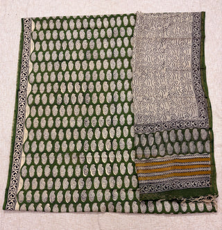 Green Cotton Handblock Office Wear Suit fabric with Kota Doria Dupatta