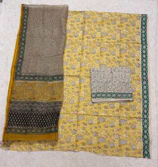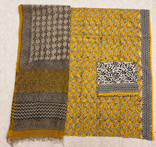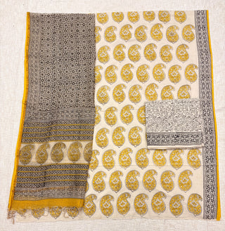 Mustard color Handblock Office Wear Suit fabric with Kota doria Dupatta