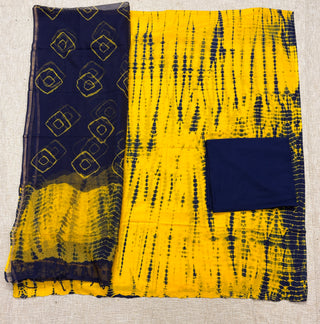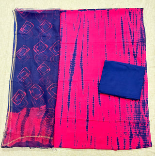 Cotton Dabu Indigo Handblock Office Wear Suit fabric with Kota doria Dupatta