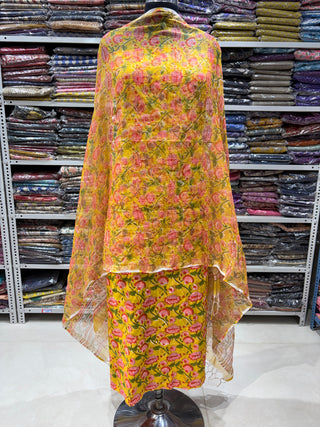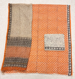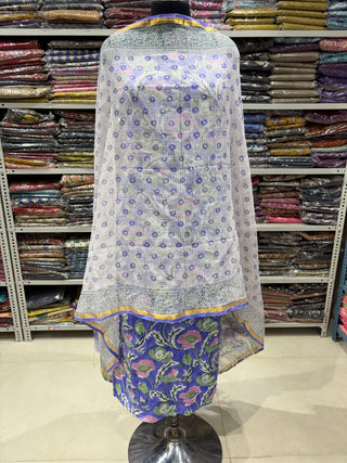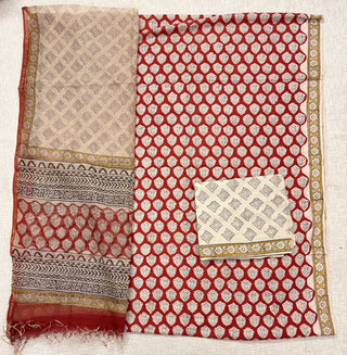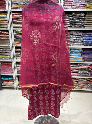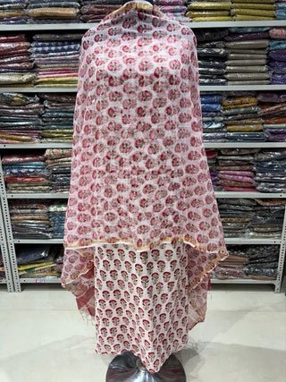 Cotton Handblock Office Wear Suit fabric with Kota Doria Dupatta