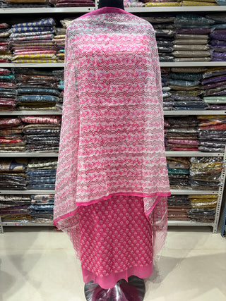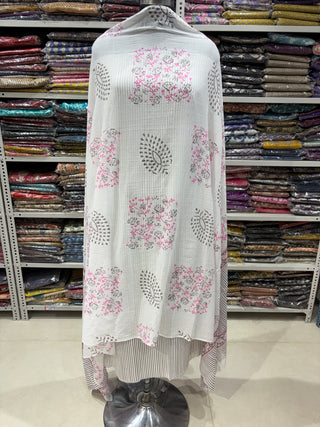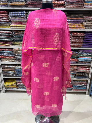 Cotton Handblock Office Wear Suit fabric top bottom with Kota Doria Dupatta