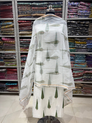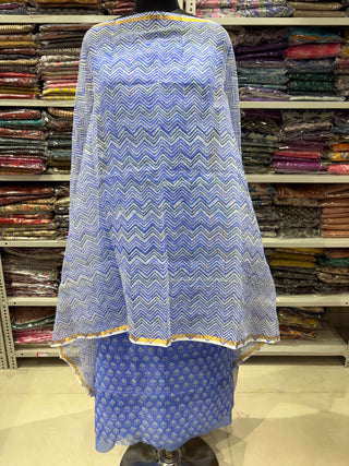 Handblock Cotton Office Wear Suit fabric with Kota doria Dupatta
