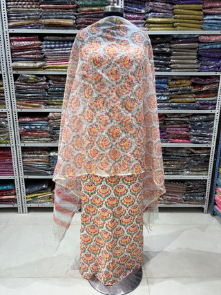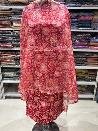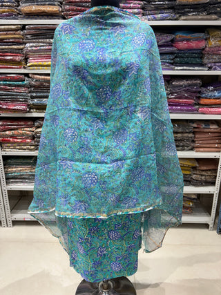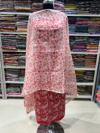 Sanganeri Print Cotton Handblock Office Wear Suit fabric with Sanganeri Kota Doria Dupatta