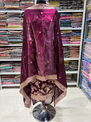 Maroon Crushed Shimmer Party Wear Designer Suit fabric with shimmer dupatta