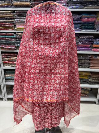 Rajasthan Kalamkari Cotton Block Print Office Wear Suit fabric with Kota Doria Dupatta