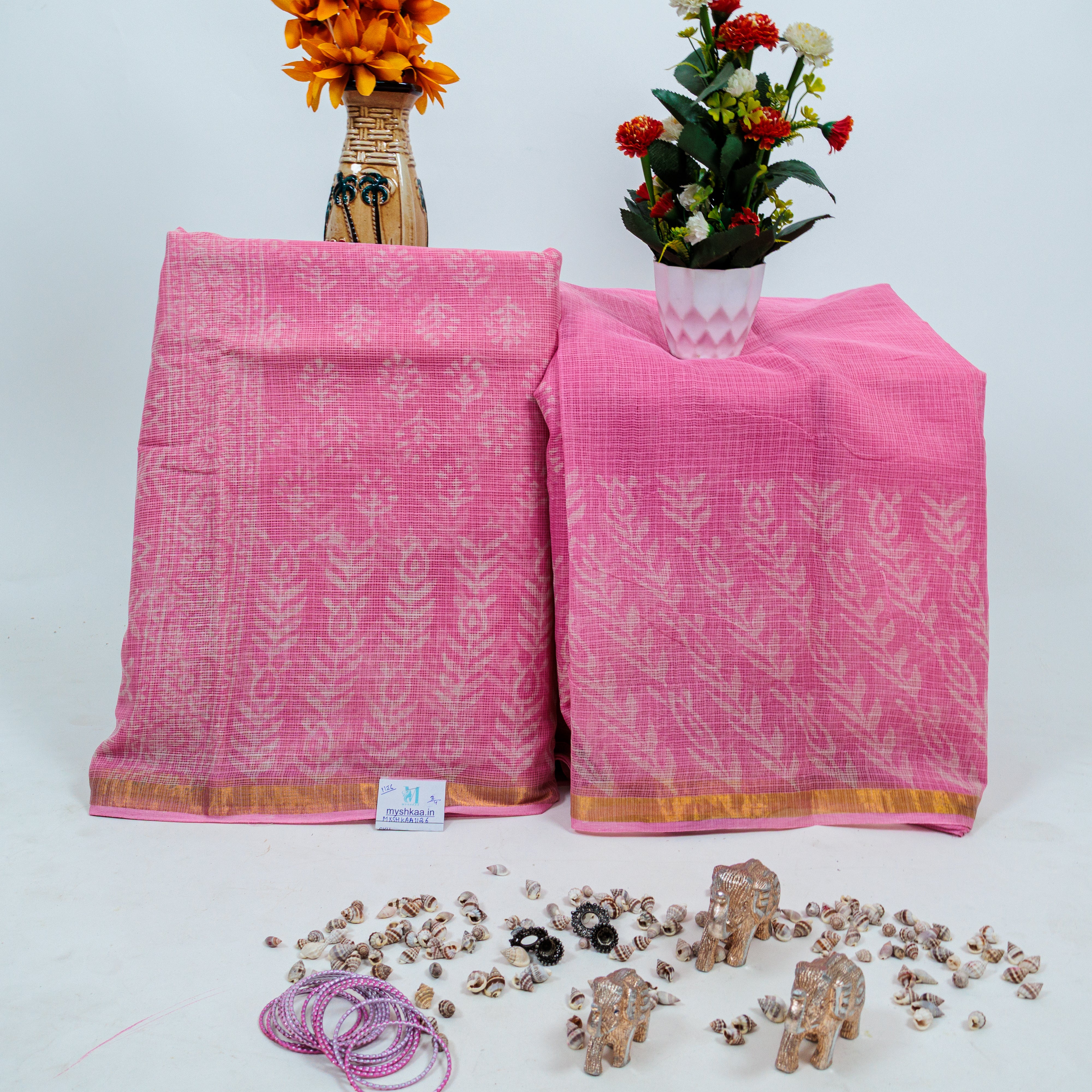- Kota Doria Saree with Kota Doria Blouse Piece