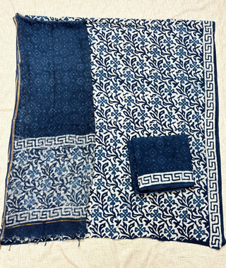 Indigo color Handblock Office Wear Suit fabric with Kota doria Dupatta