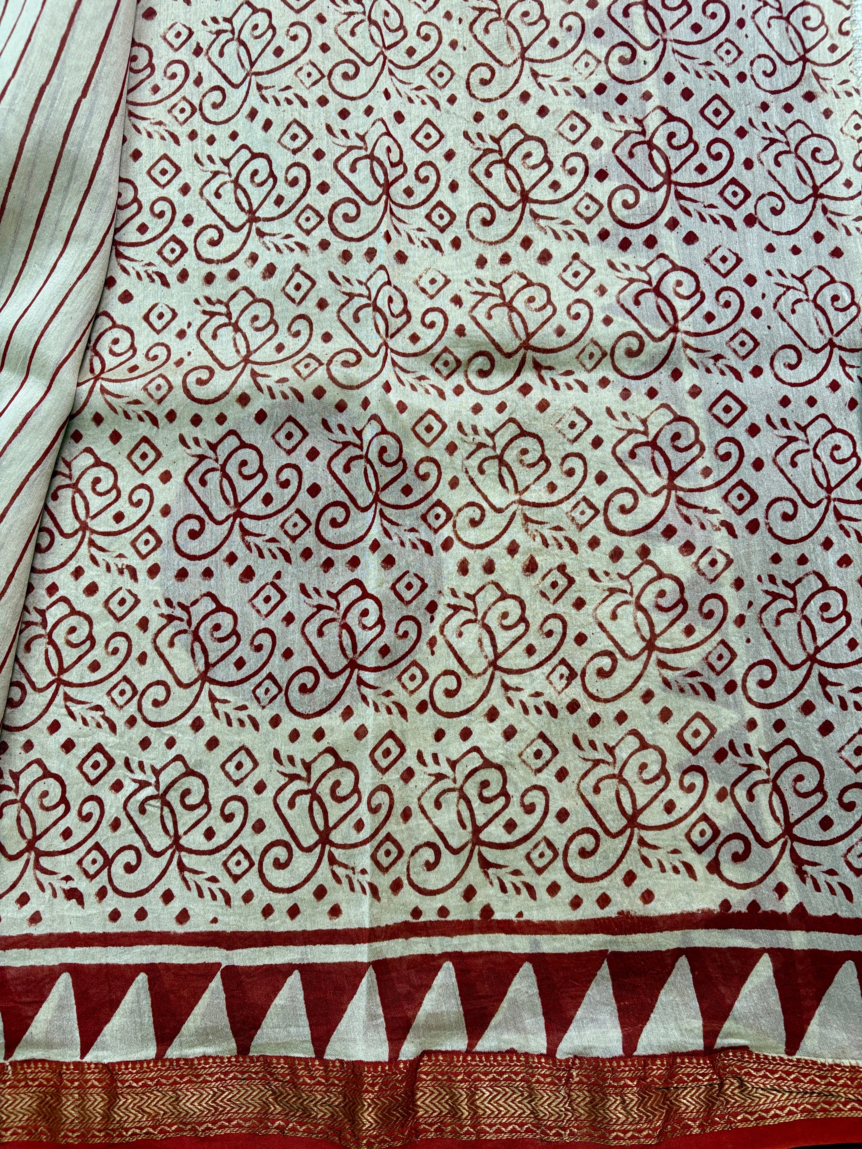 Ajrakh Print Maheshwari Silk Saree with Unstitched Blouse Piece
