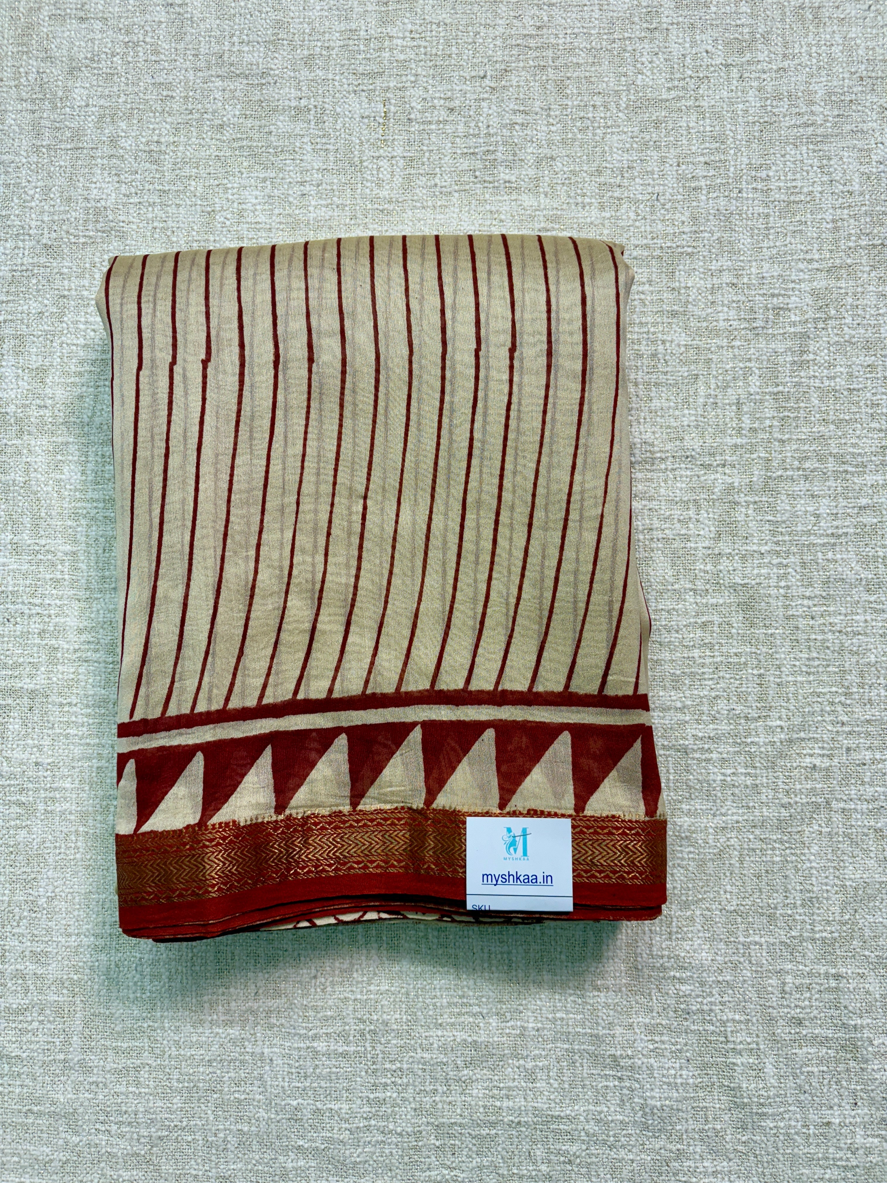This Premium Brown Maheshwari Silk Saree with blouse piece is suitable for all occasions like functions, weddings, office or any formal events.