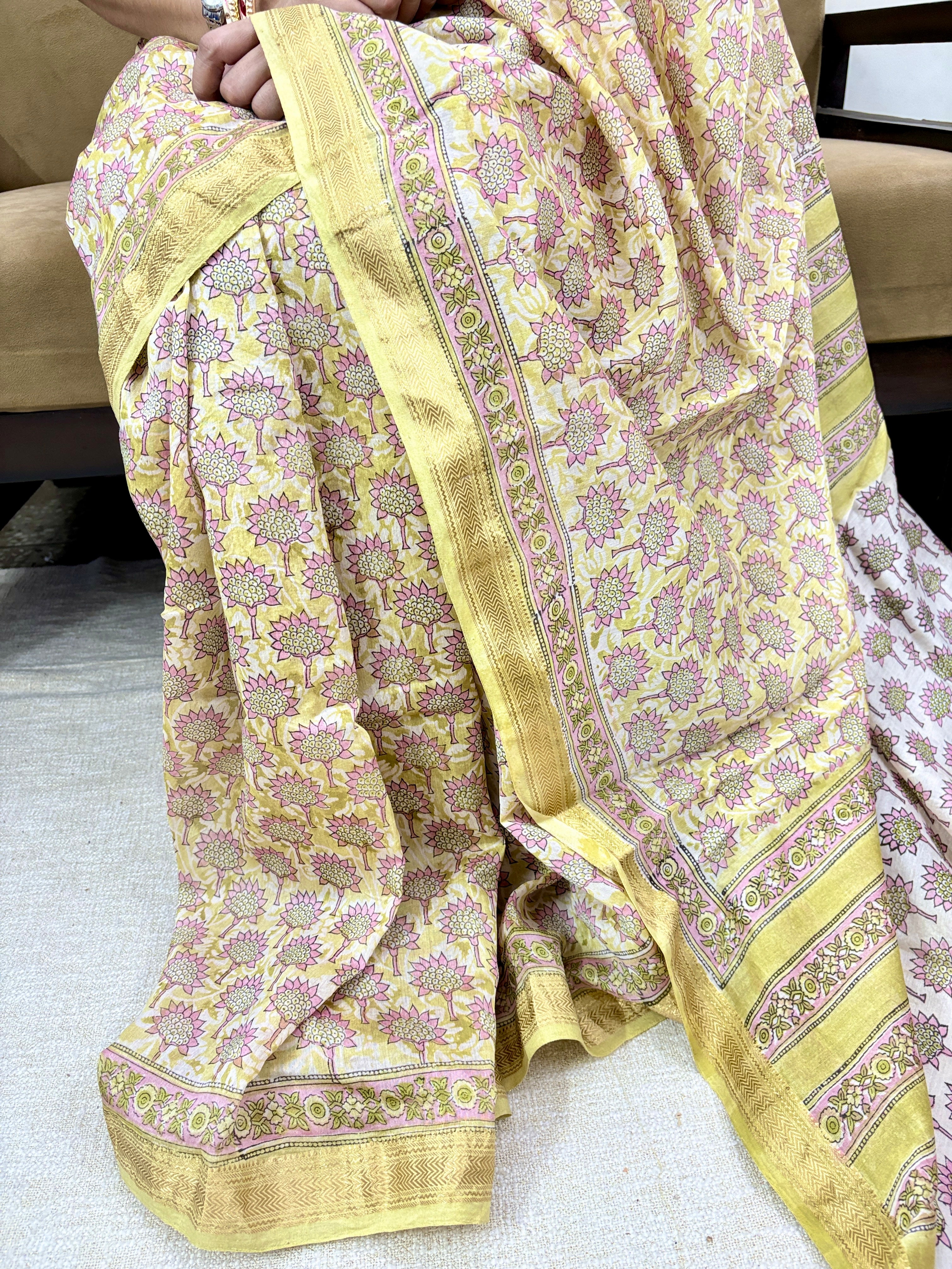 Light Green Office Wear Maheshwari Silk Saree with Unstitched Blouse Piece (Lining Included)
