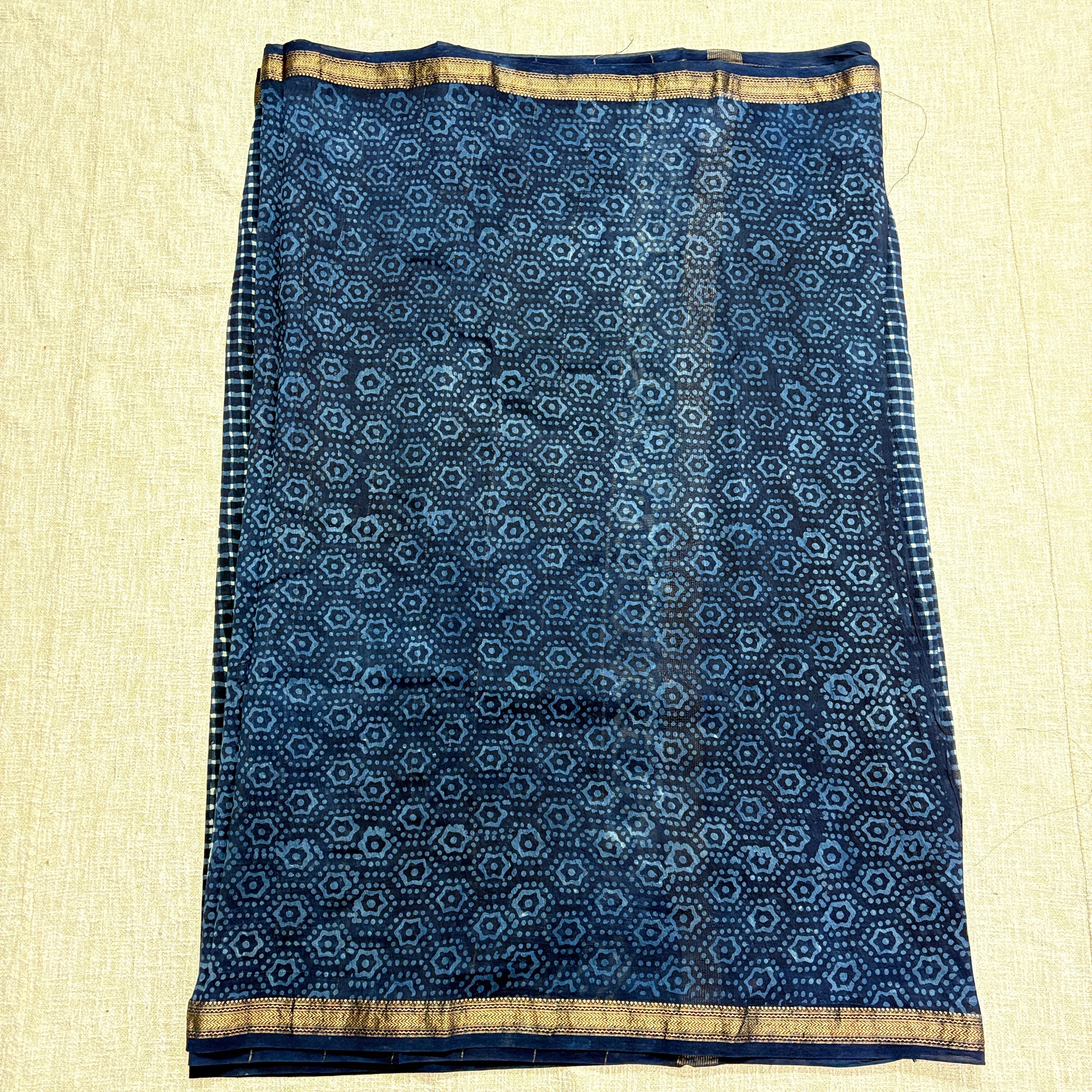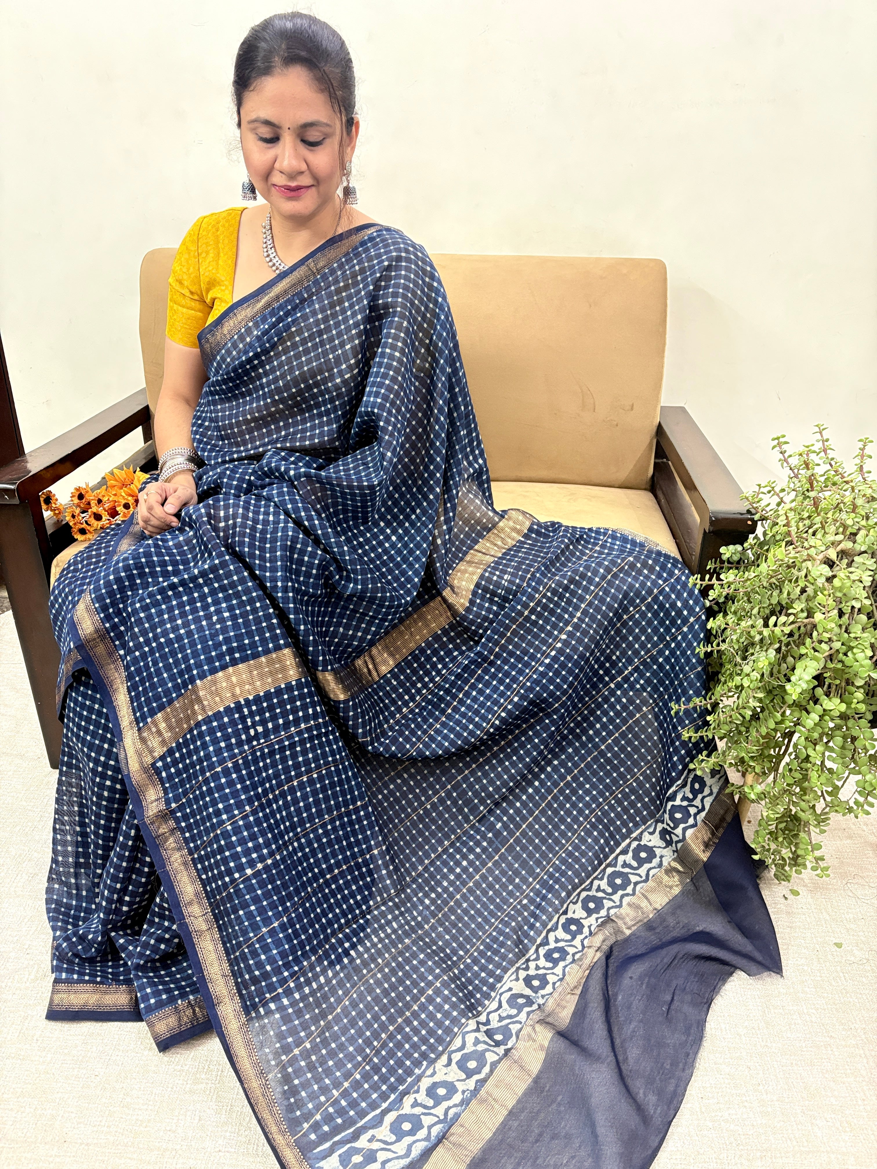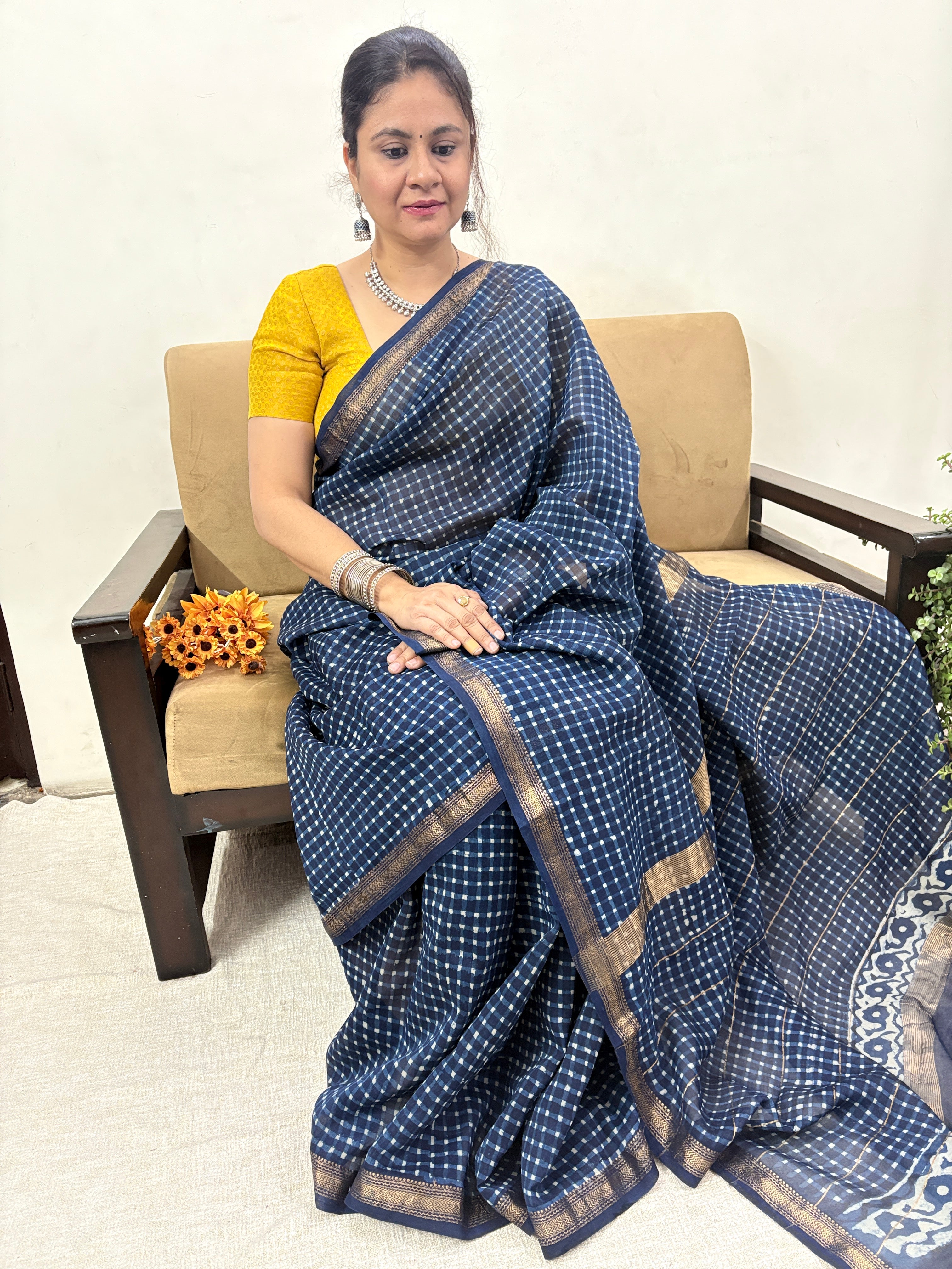 Handblock Maheshwari Silk Saree with Unstitched Blouse Piece (Lining Included)