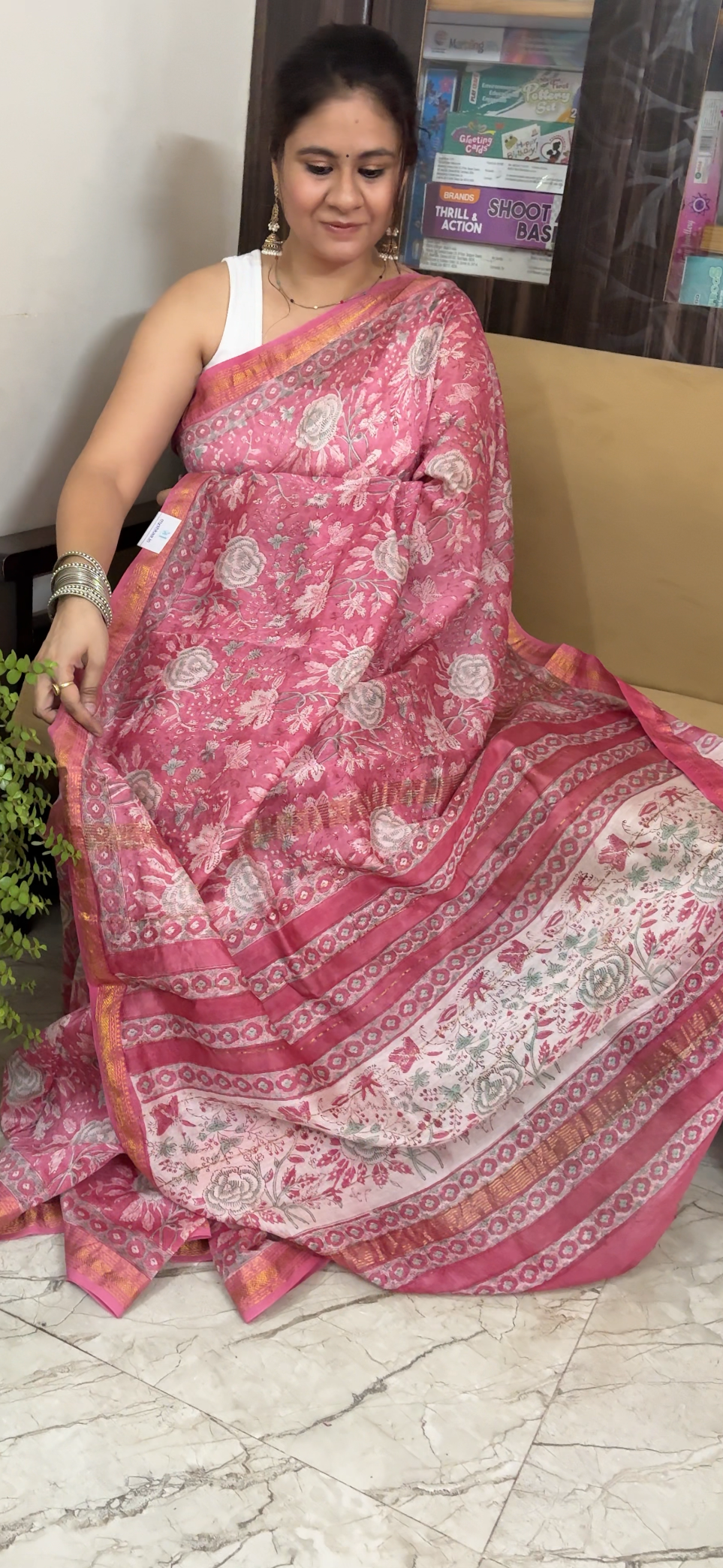 Maheshwari Silk Saree with Unstitched Blouse Piece