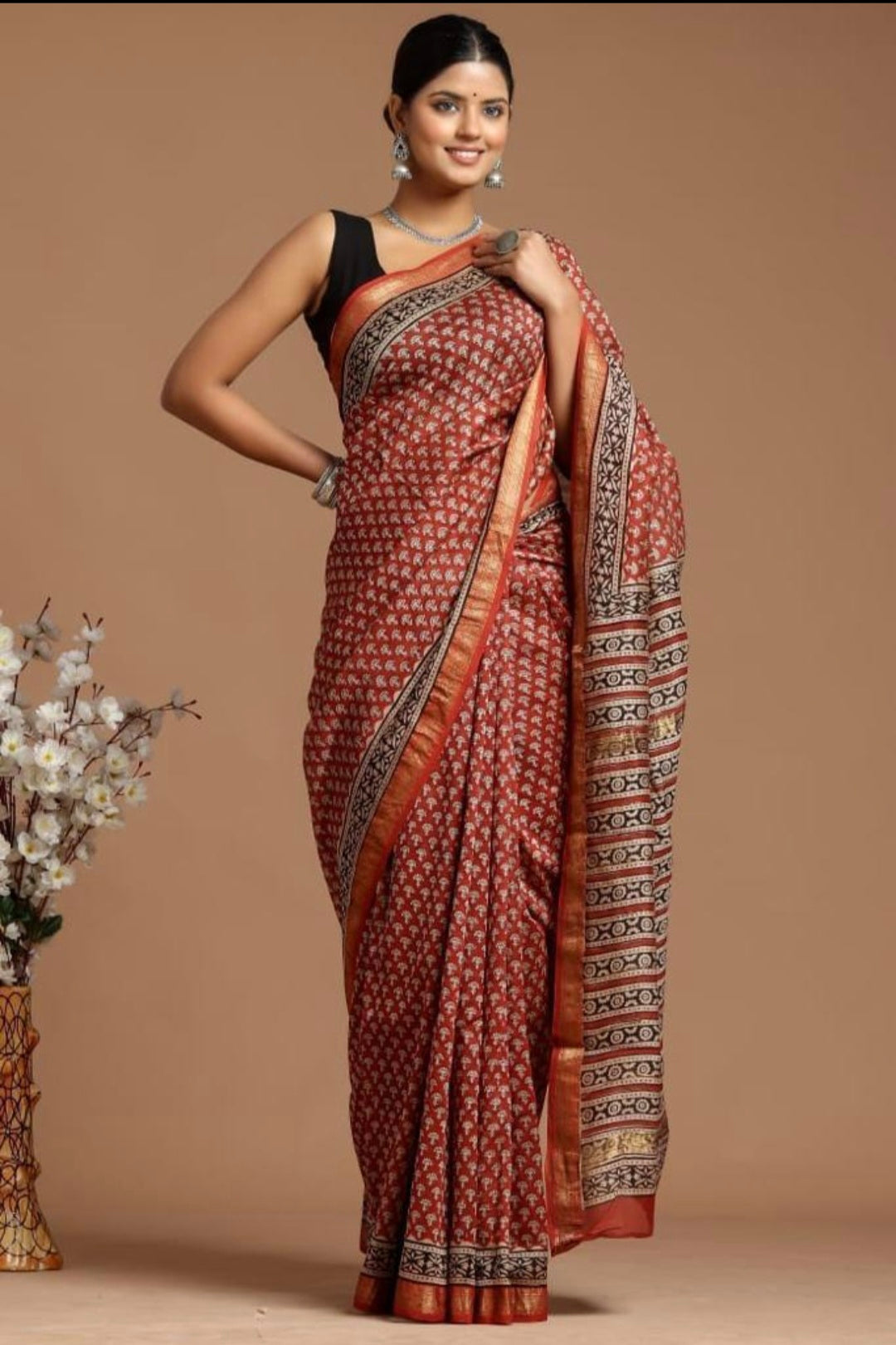 This Premium Maheshwari Silk Saree with blouse piece is suitable for all occasions like functions, weddings, office or any formal events.