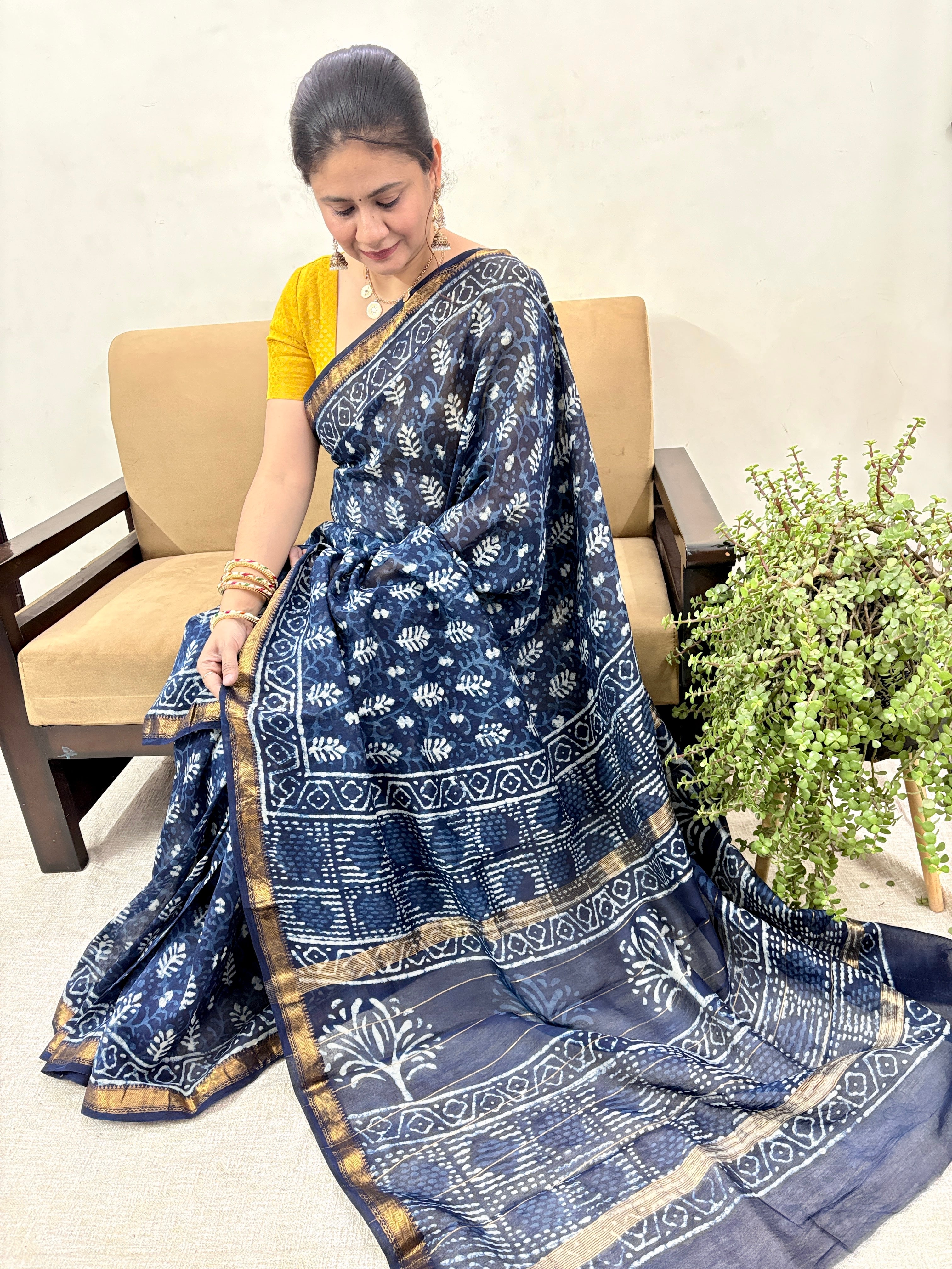 Maheshwari Silk Saree with Unstitched Blouse Piece (Lining Included)