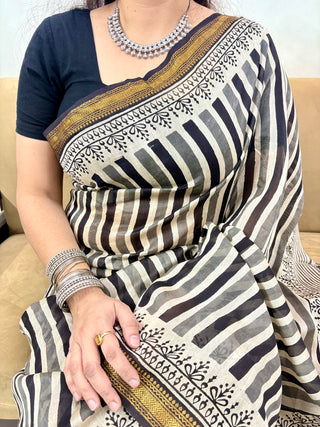 Handblock Maheshwari Silk Saree with Unstitched Blouse Piece (Lining Included)
