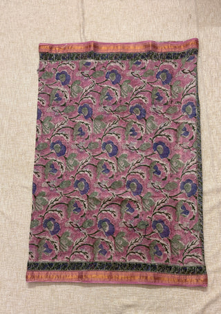 Off White Floral Maheshwari Silk Saree with Unstitched Blouse Piece