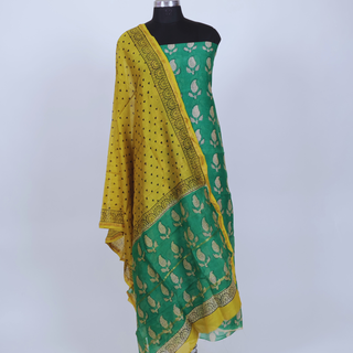 Handblock Chanderi Suit Material with Chanderi Dupatta