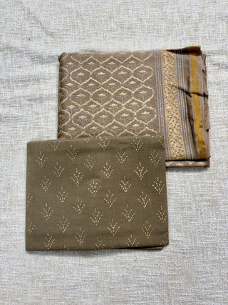 Brown Chikoo Color Party Wear Tussar Suit fabric with Tussar dupatta