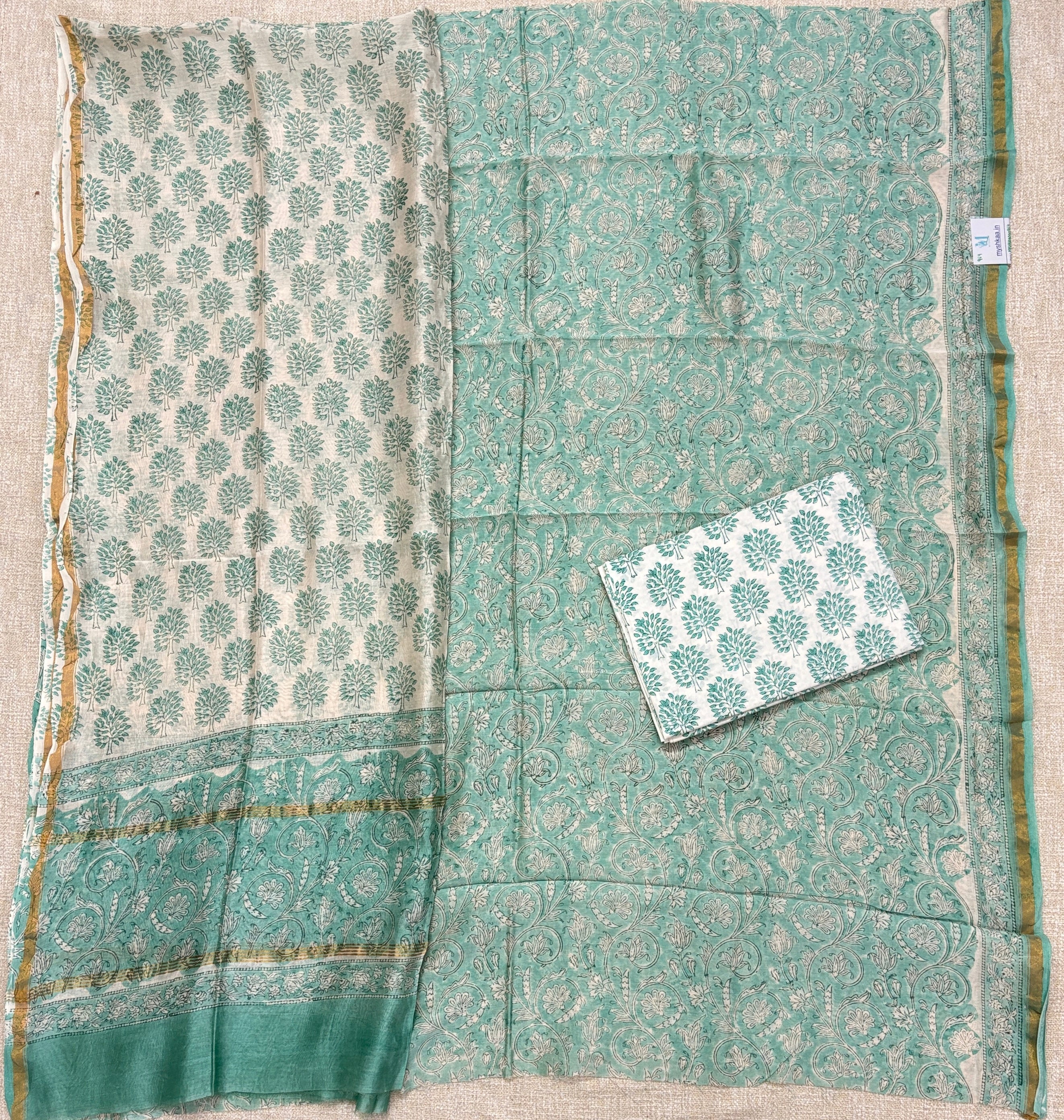 Handblock Chanderi Suit Material with Chanderi Dupatta(Lining Included)