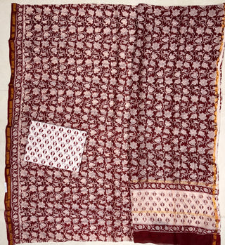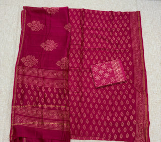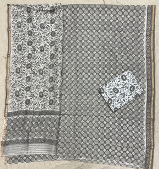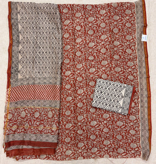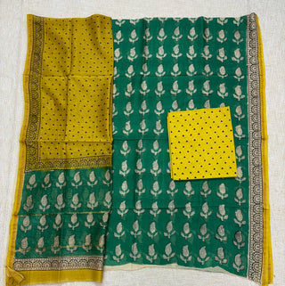Handblock Chanderi Suit Material with Chanderi Dupatta(Lining Included)