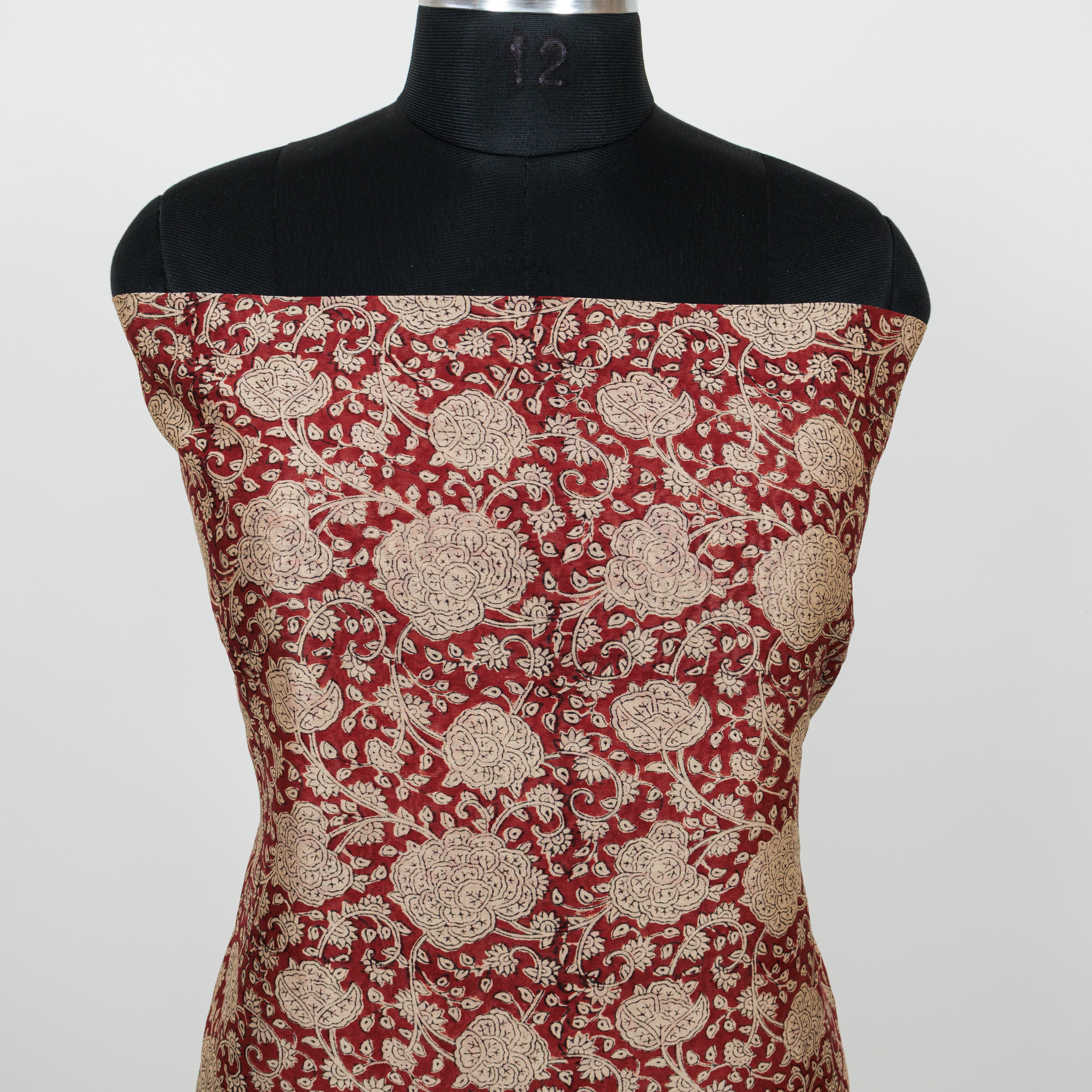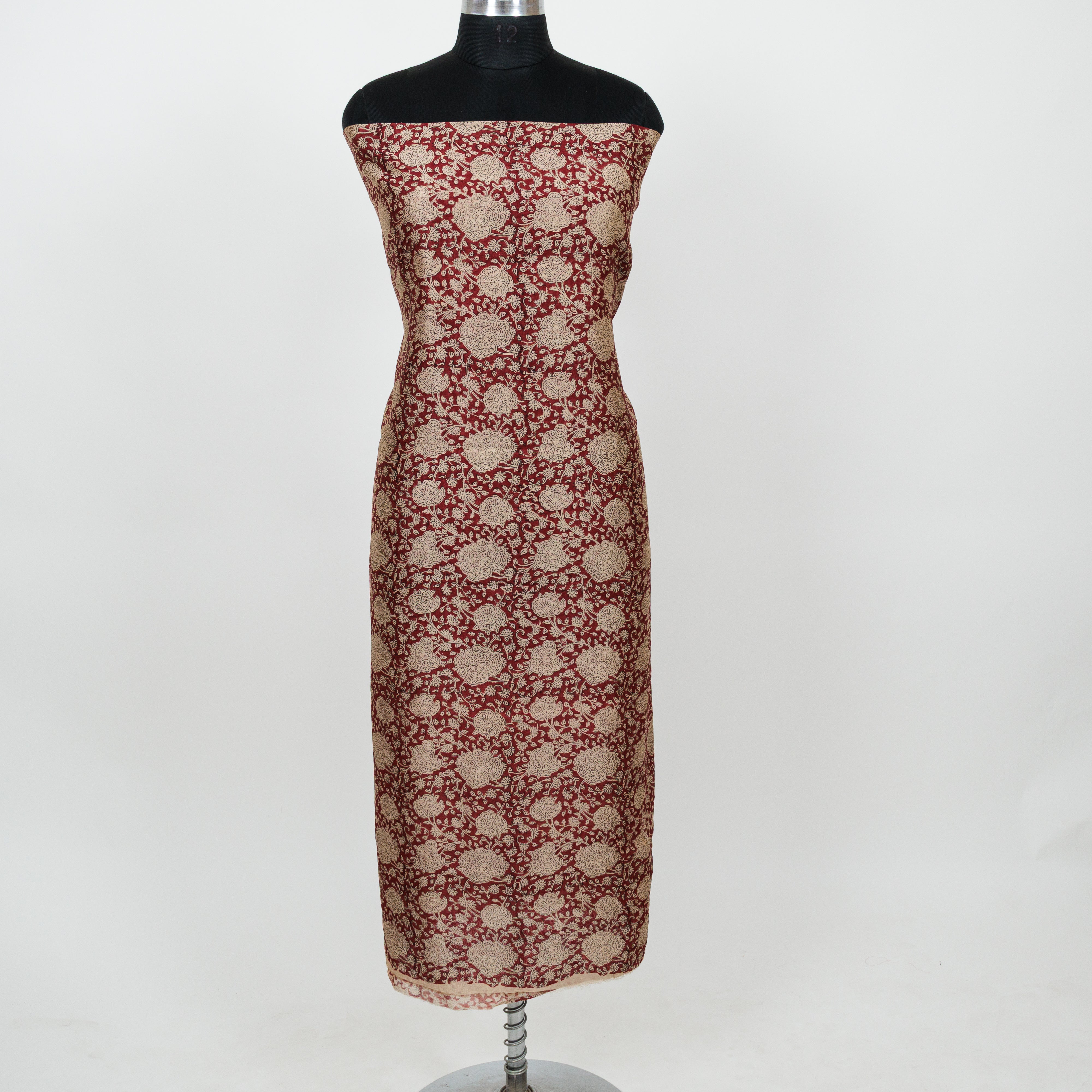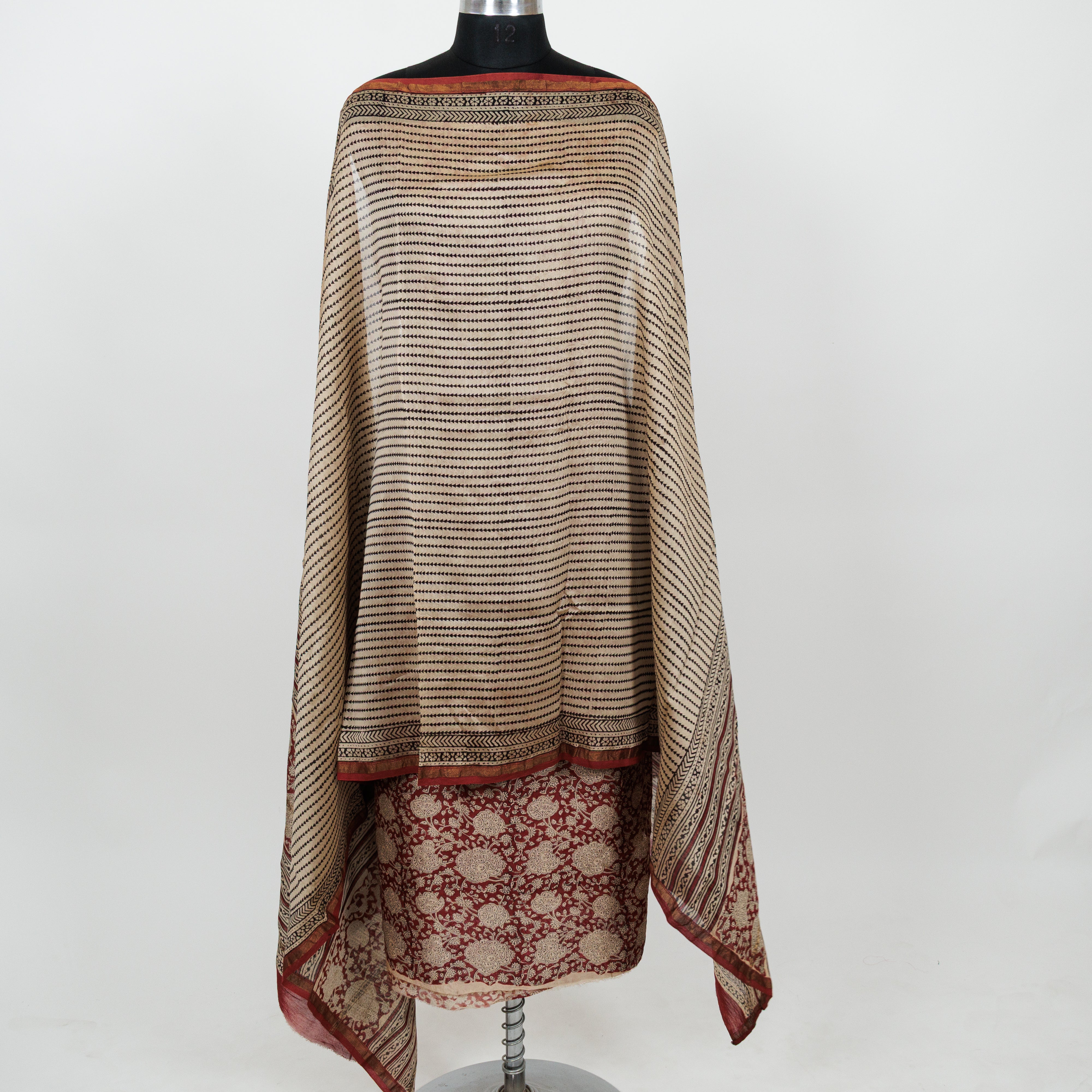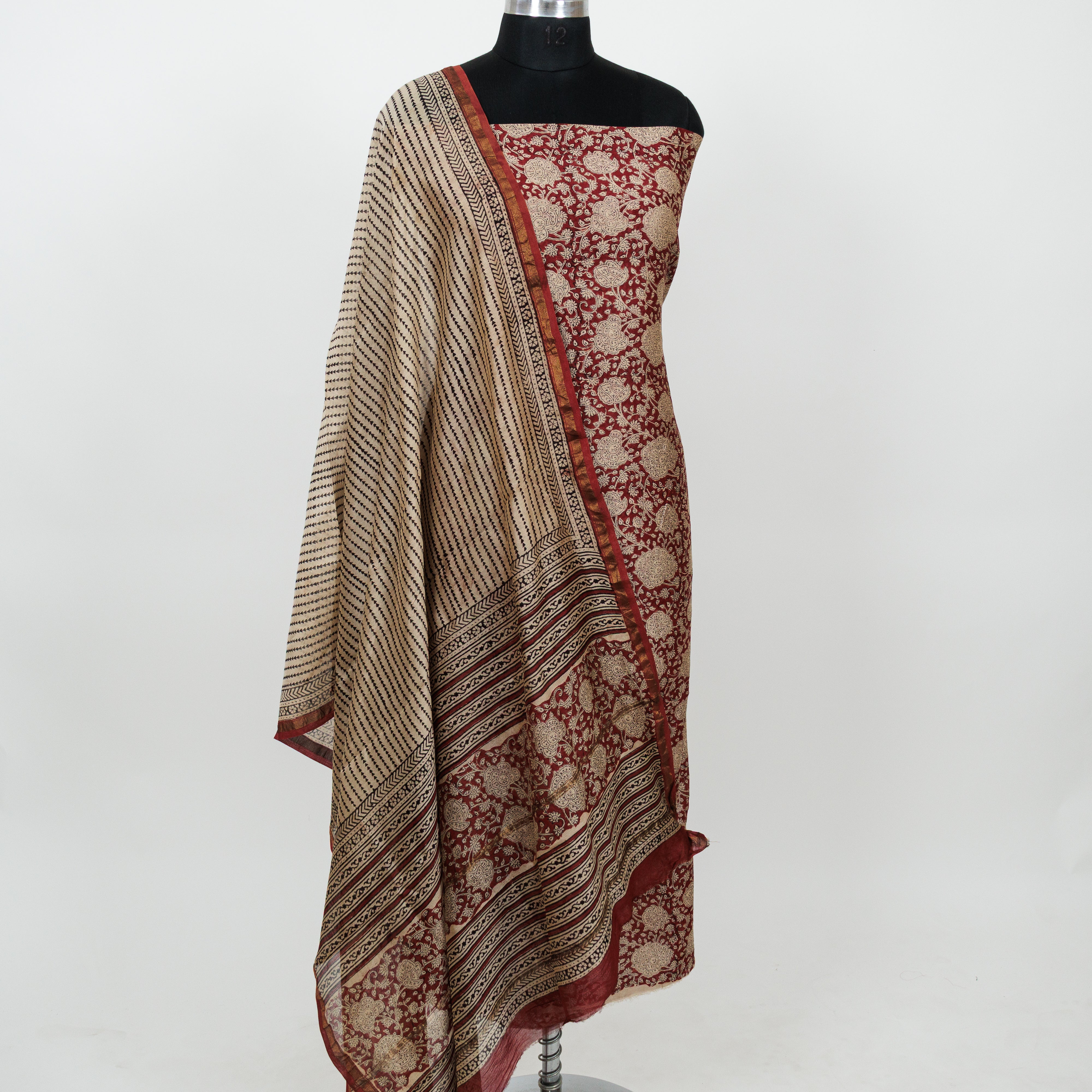 Red Handblock Chanderi Suit Material with Chanderi Dupatta