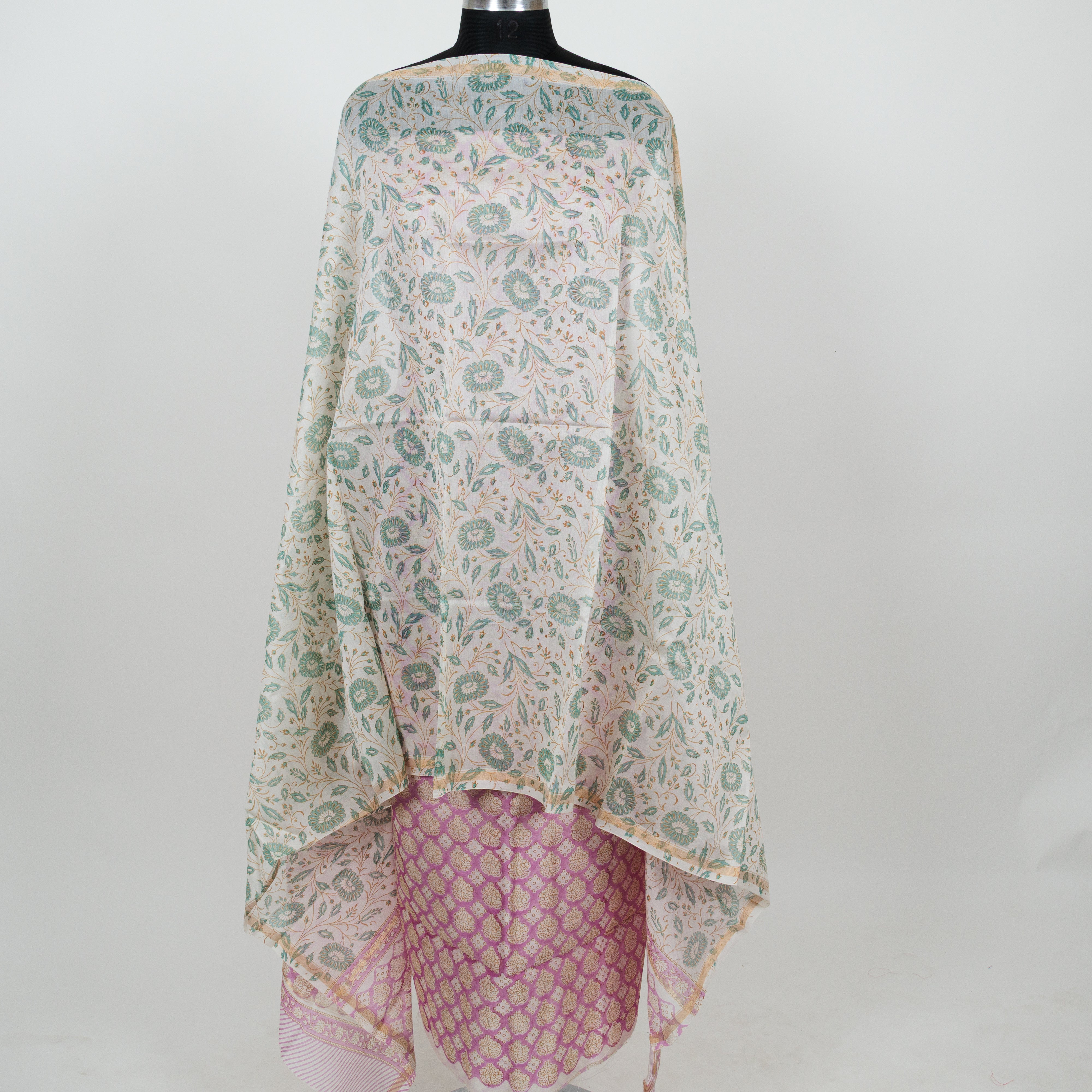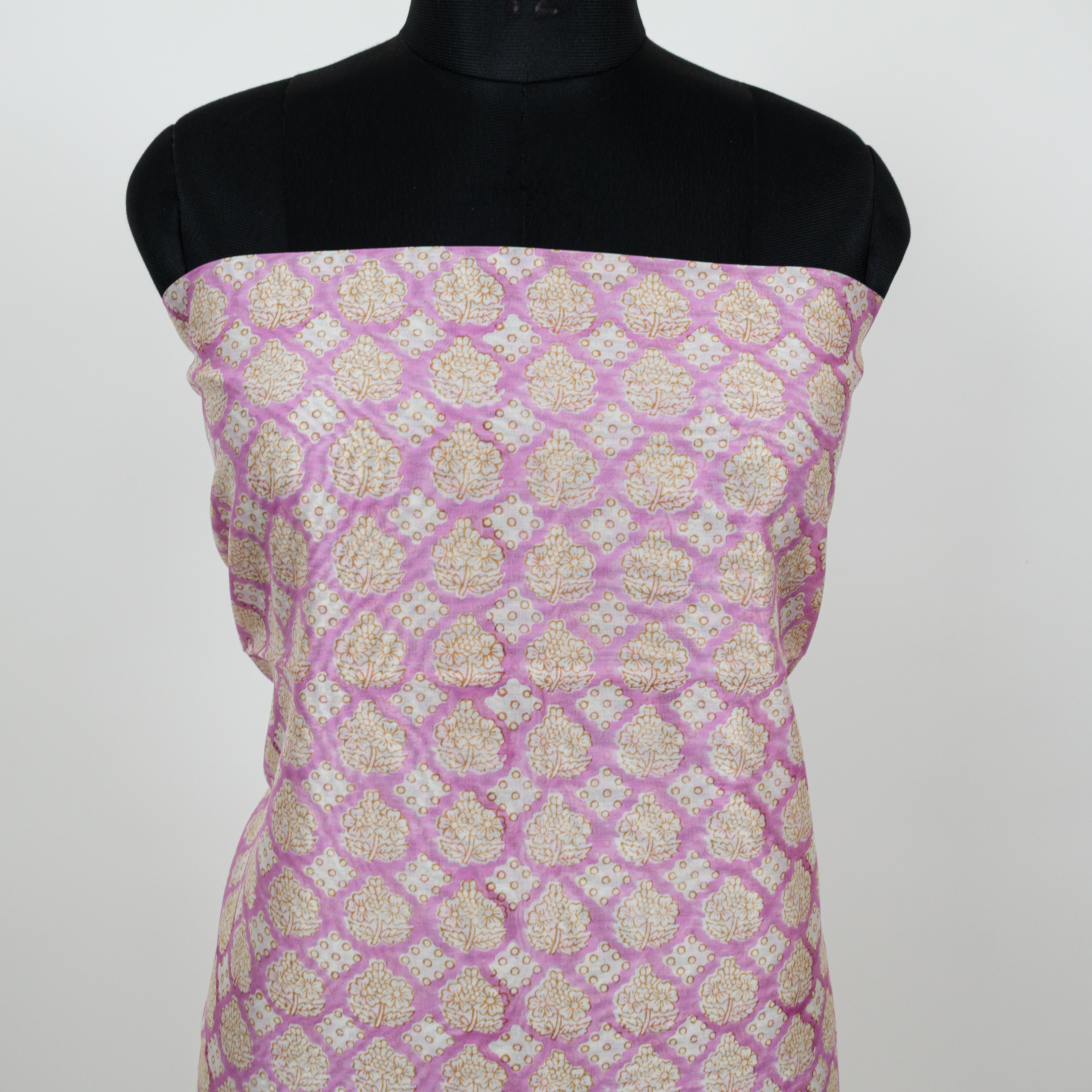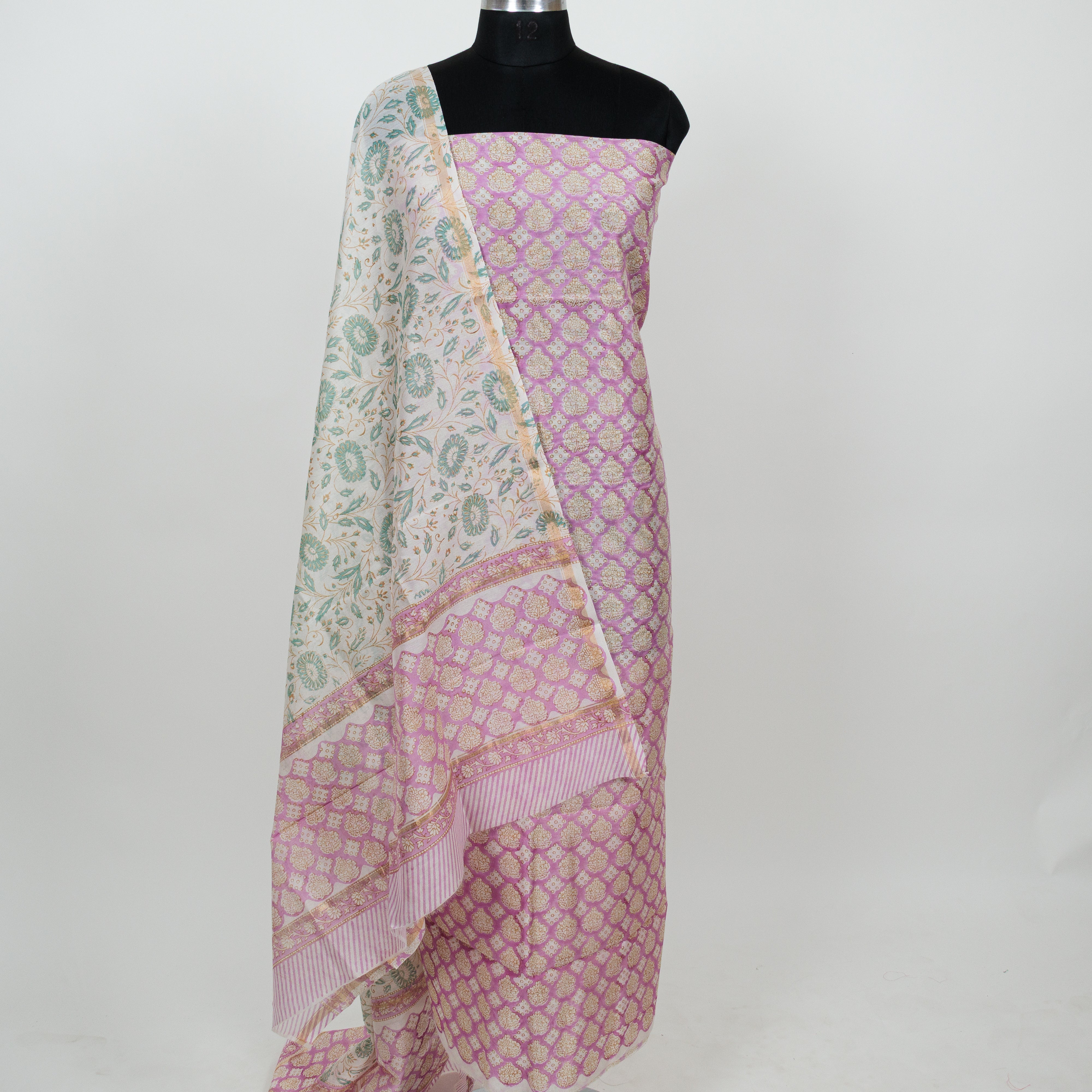 Pink Handblock Chanderi Suit Material with Chanderi Dupatta