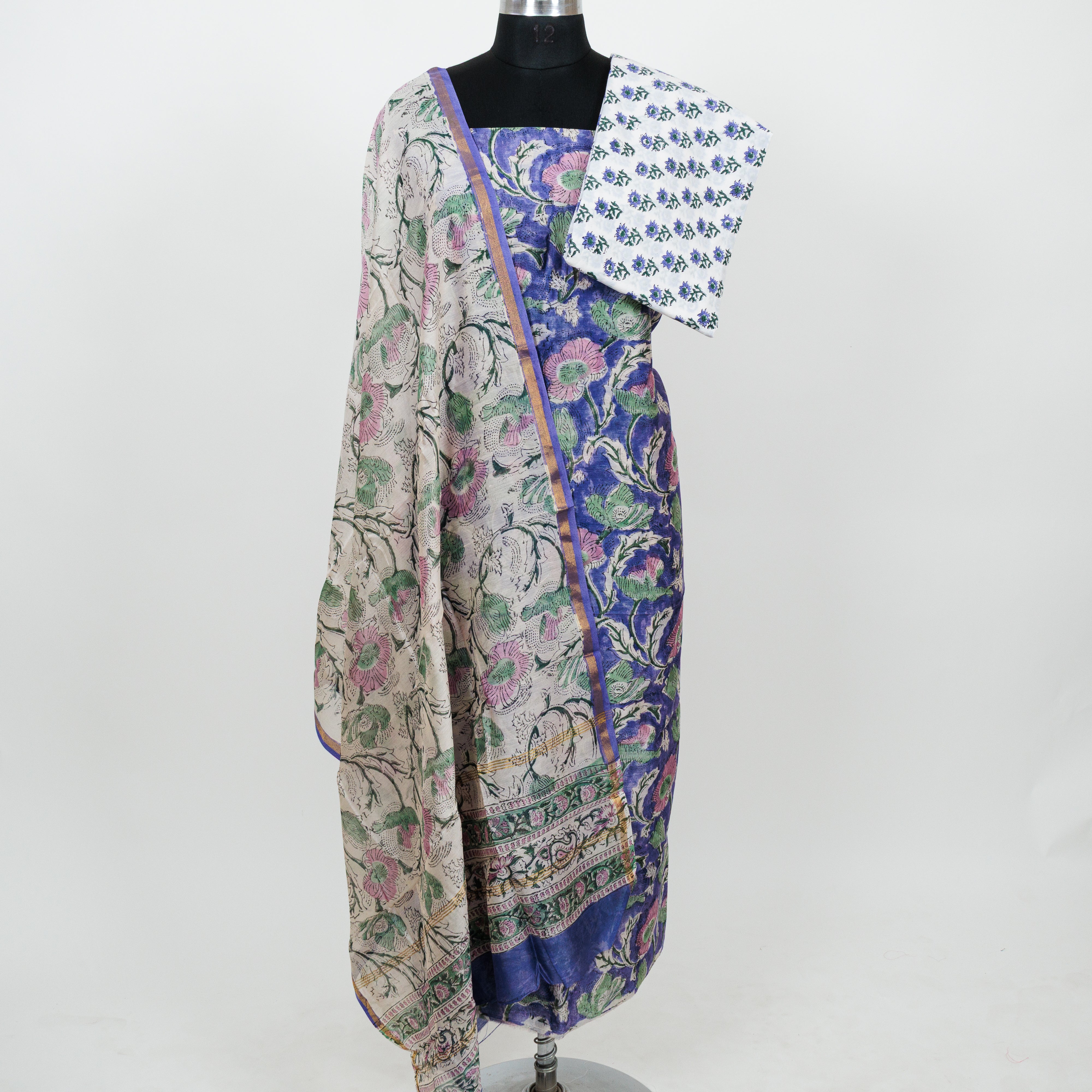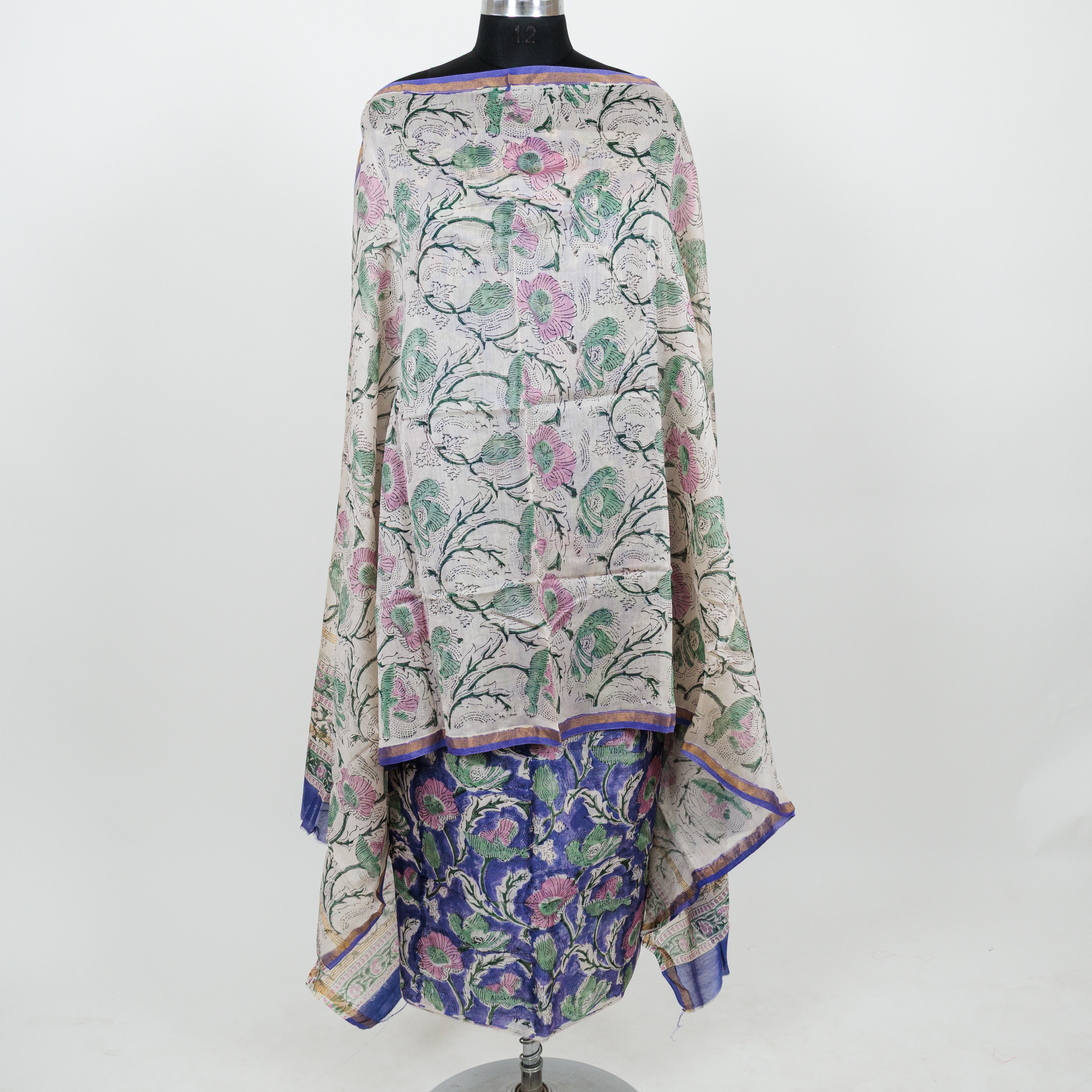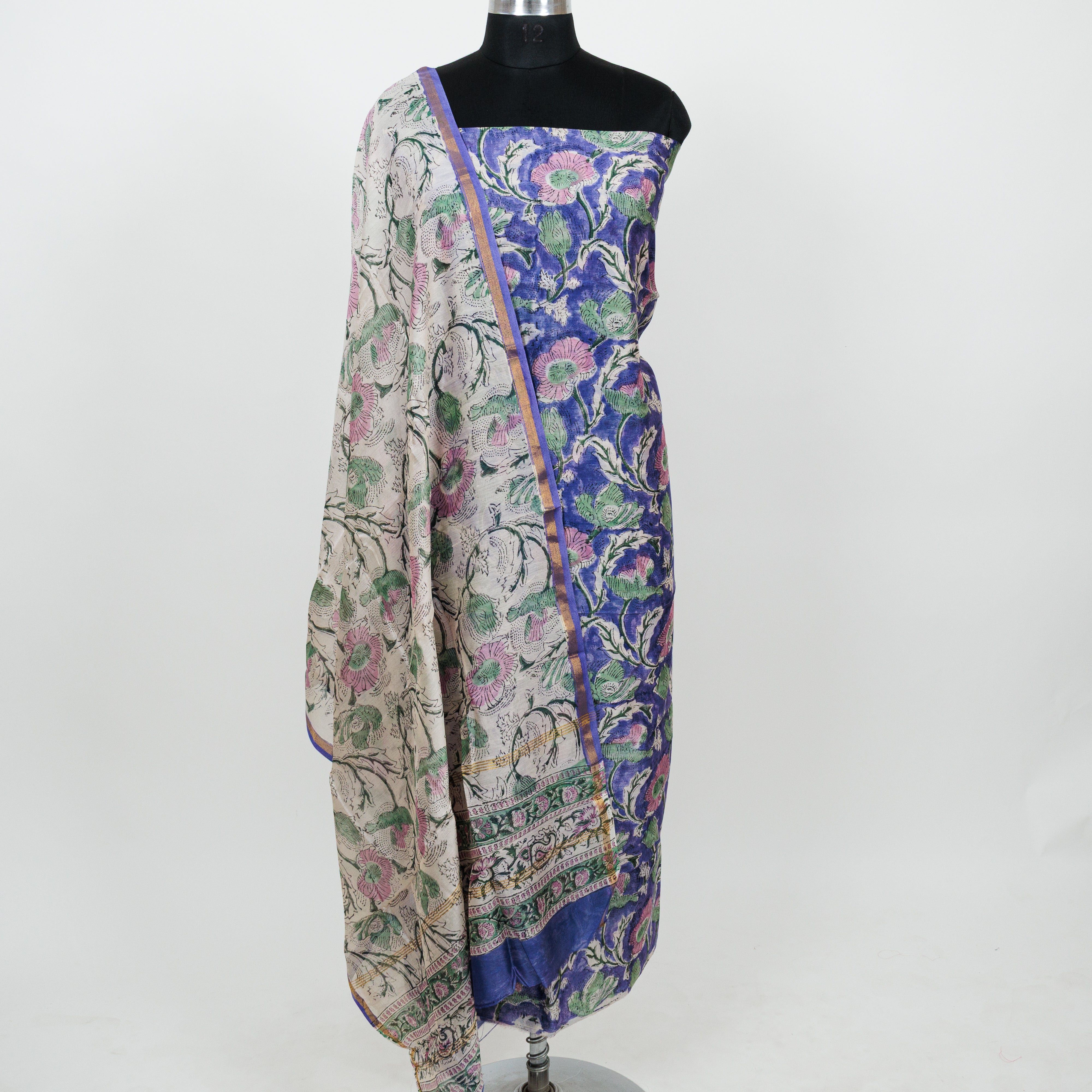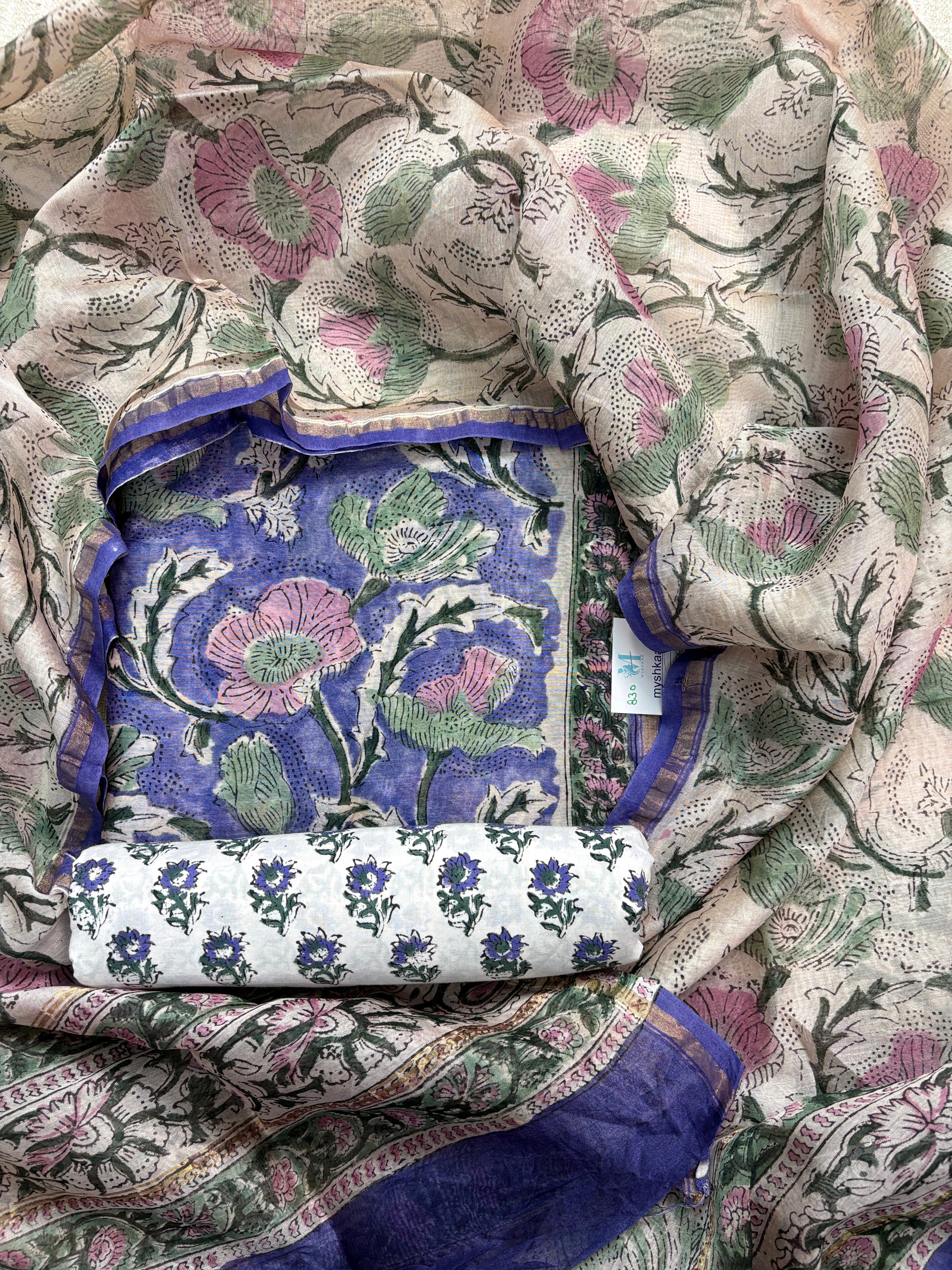 Handblock Chanderi Suit Material with Chanderi Dupatta