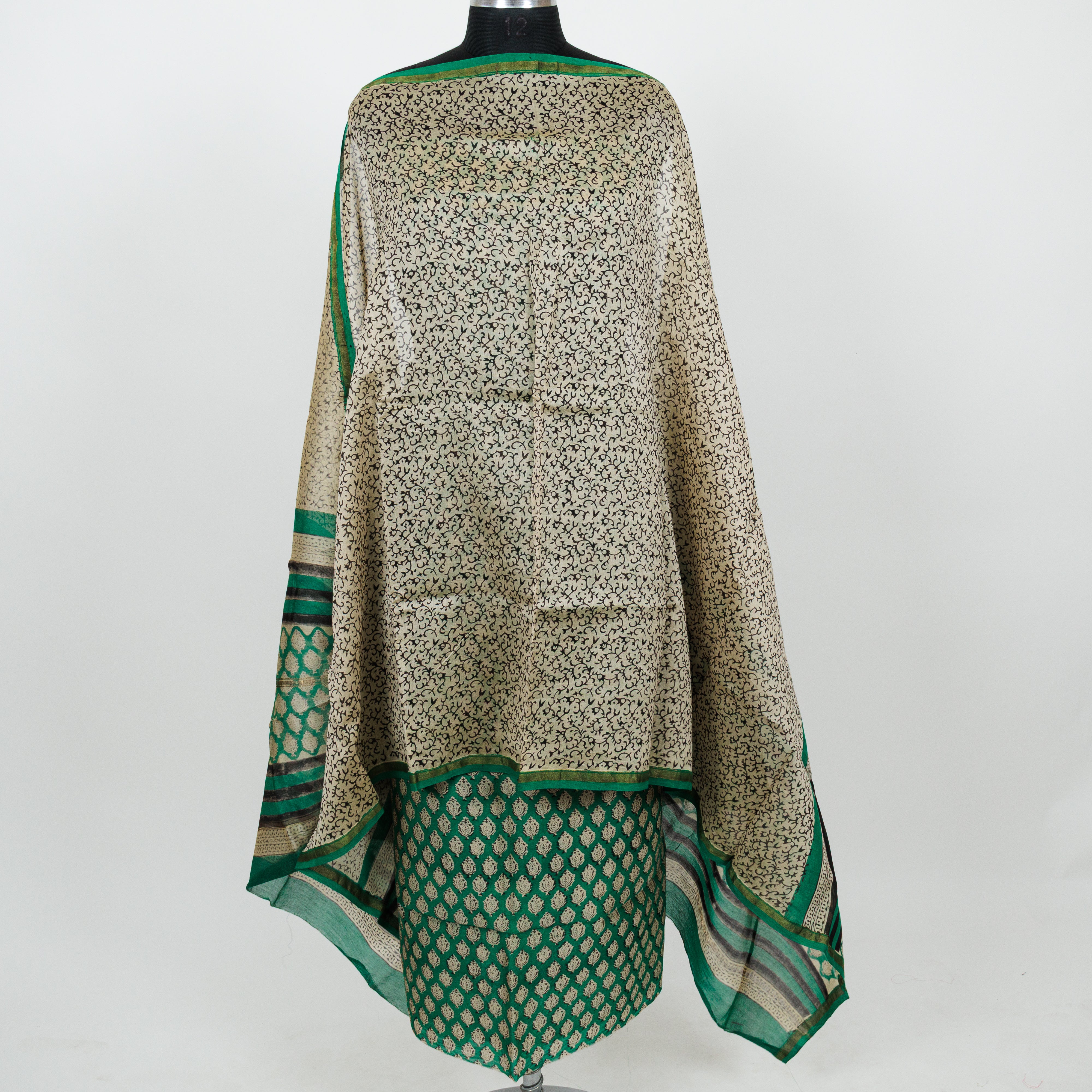 Green Handblock Chanderi Suit Material with Chanderi Dupatta