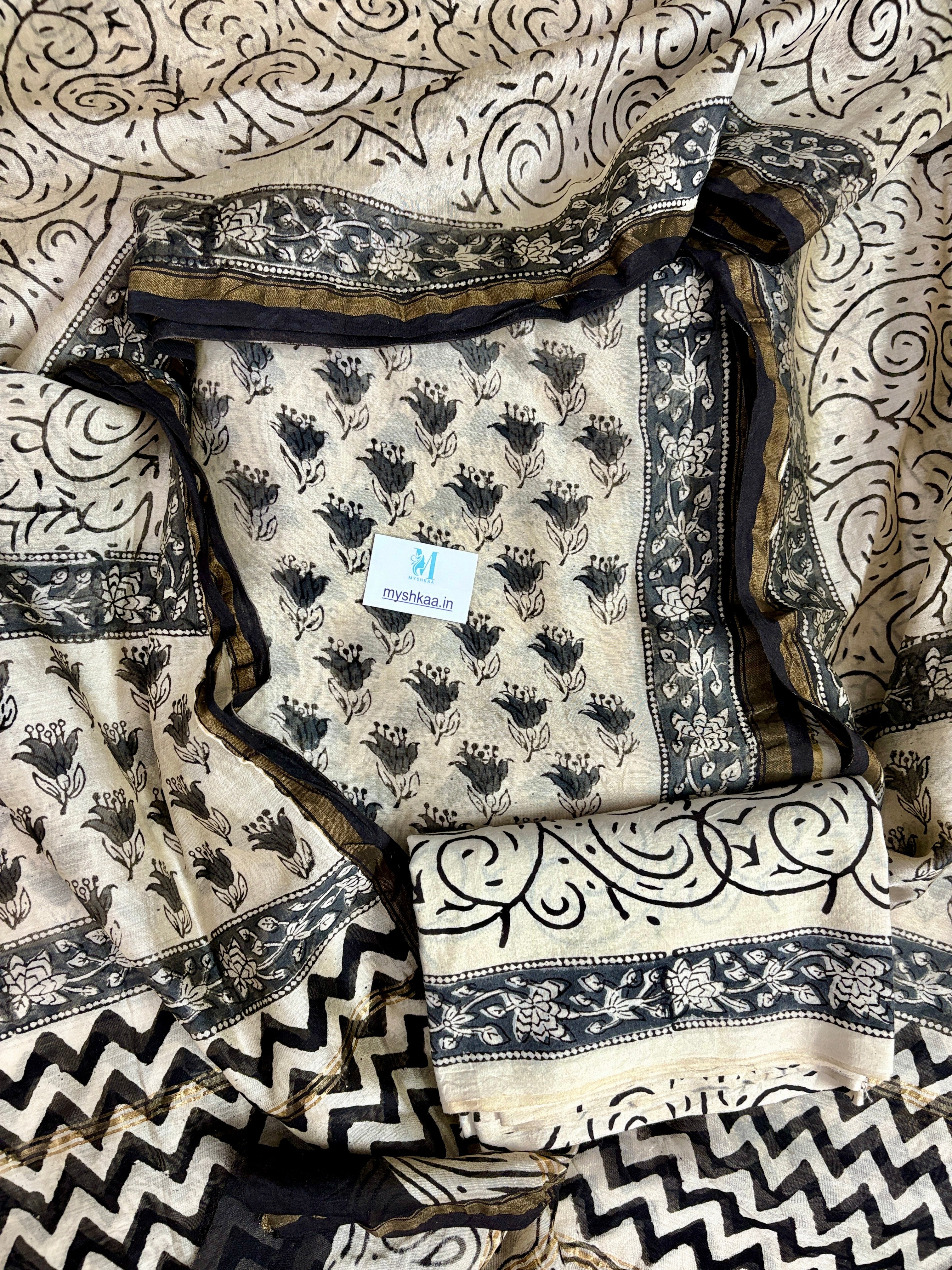Handblock Chanderi Suit Material with Chanderi Dupatta