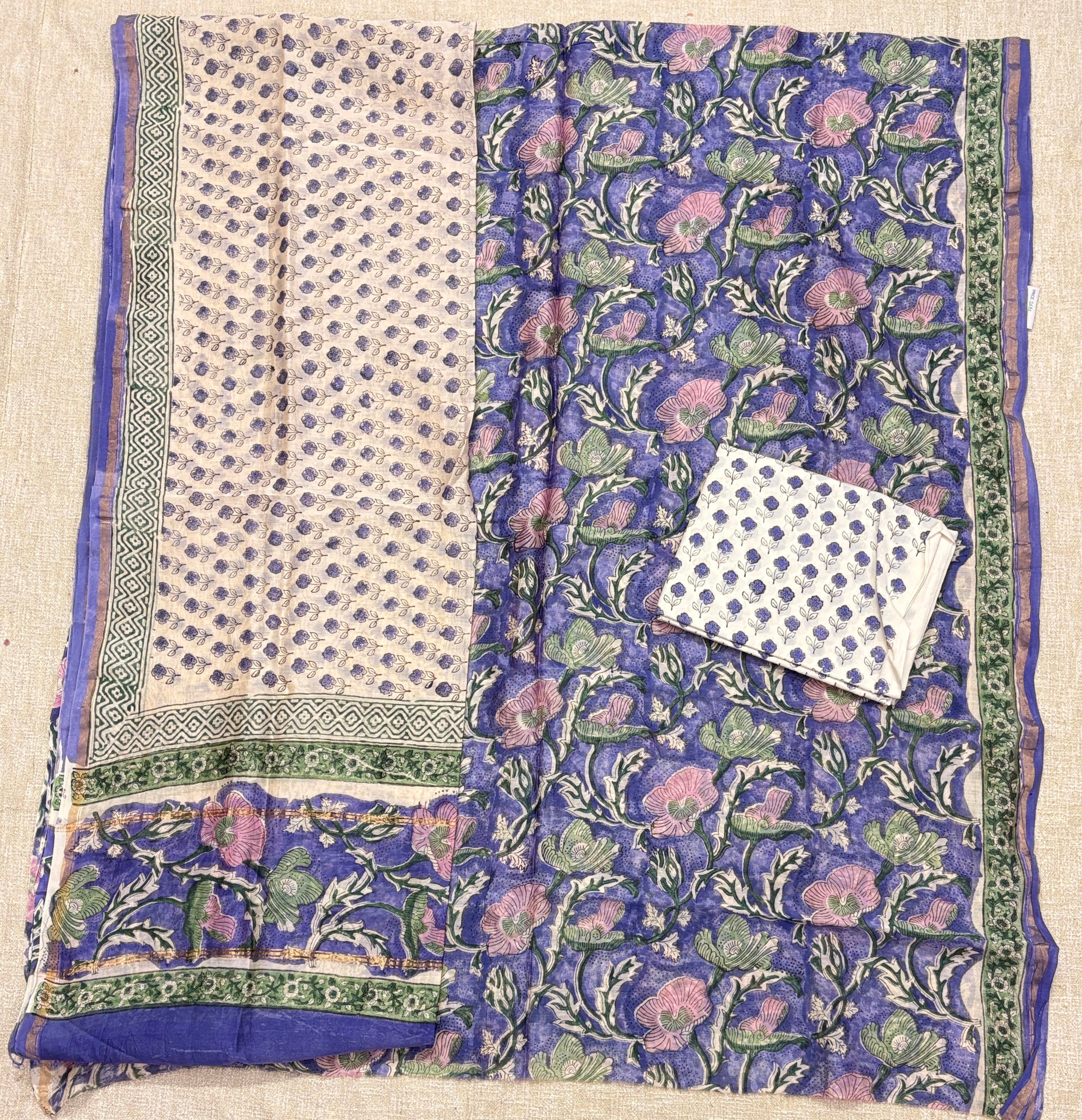Handblock Chanderi Suit Material with Chanderi Dupatta(Lining Included)