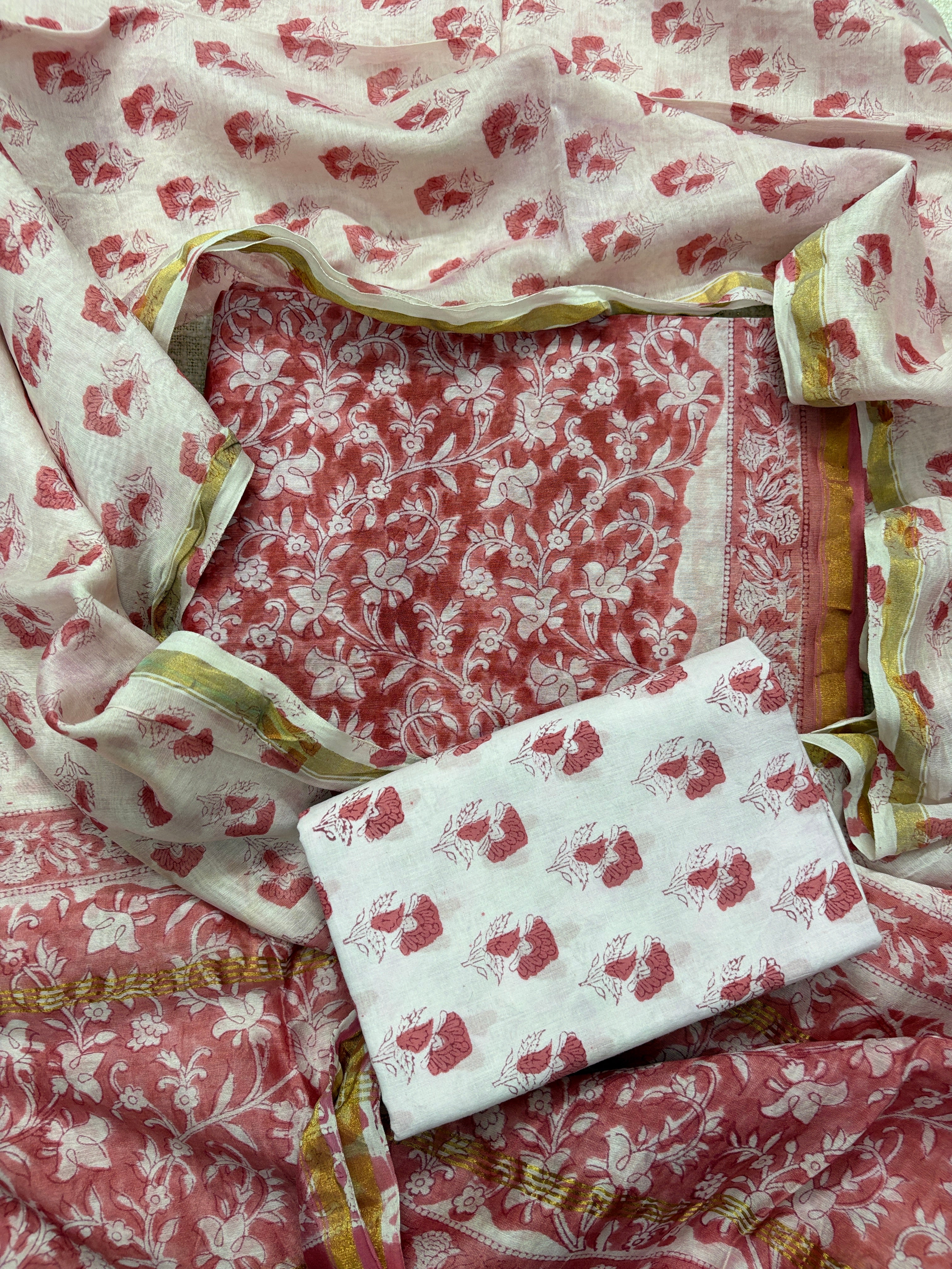 Handblock Chanderi Suit Material with Chanderi Dupatta