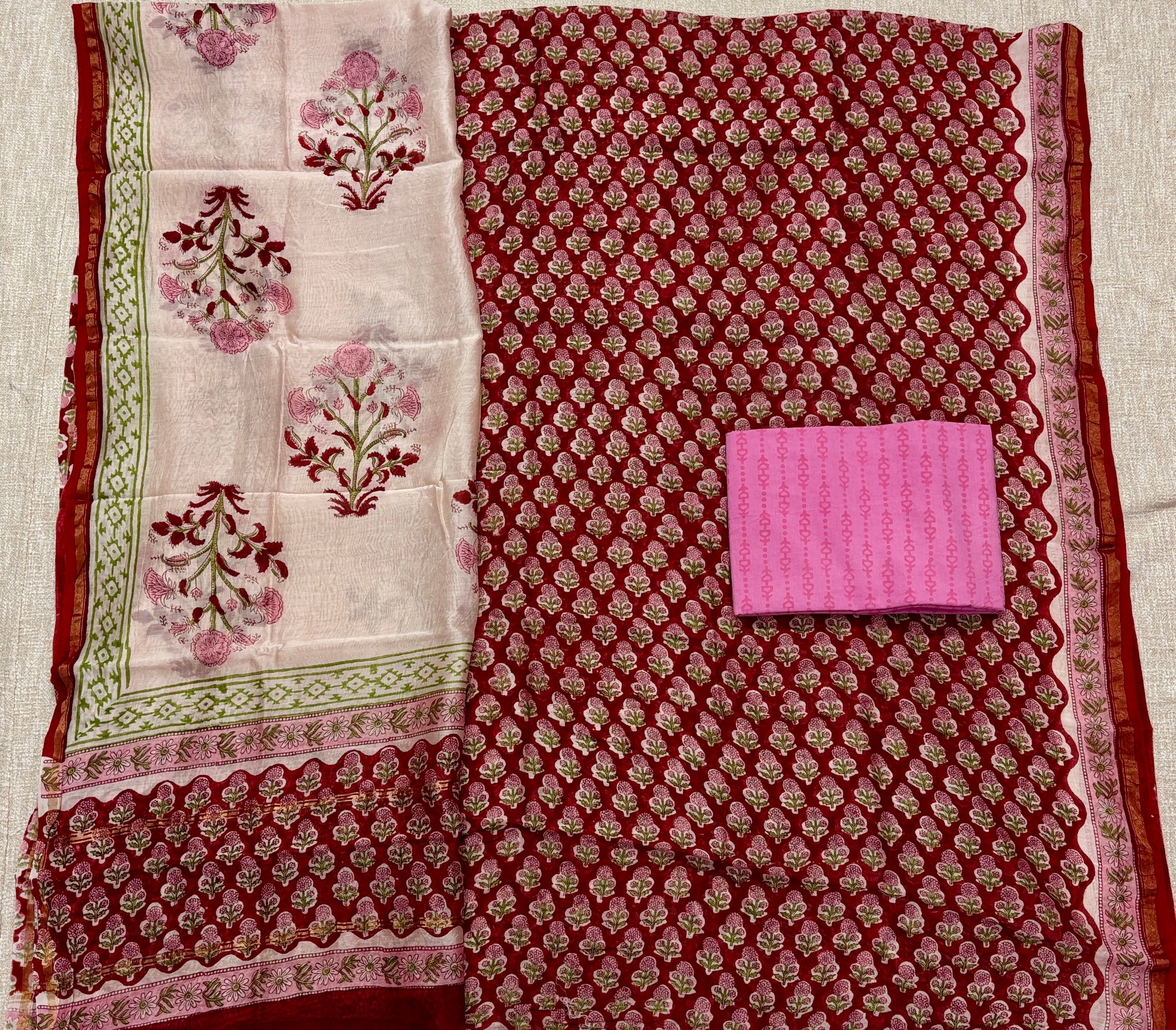 Handblock Chanderi Suit Material with Chanderi Dupatta