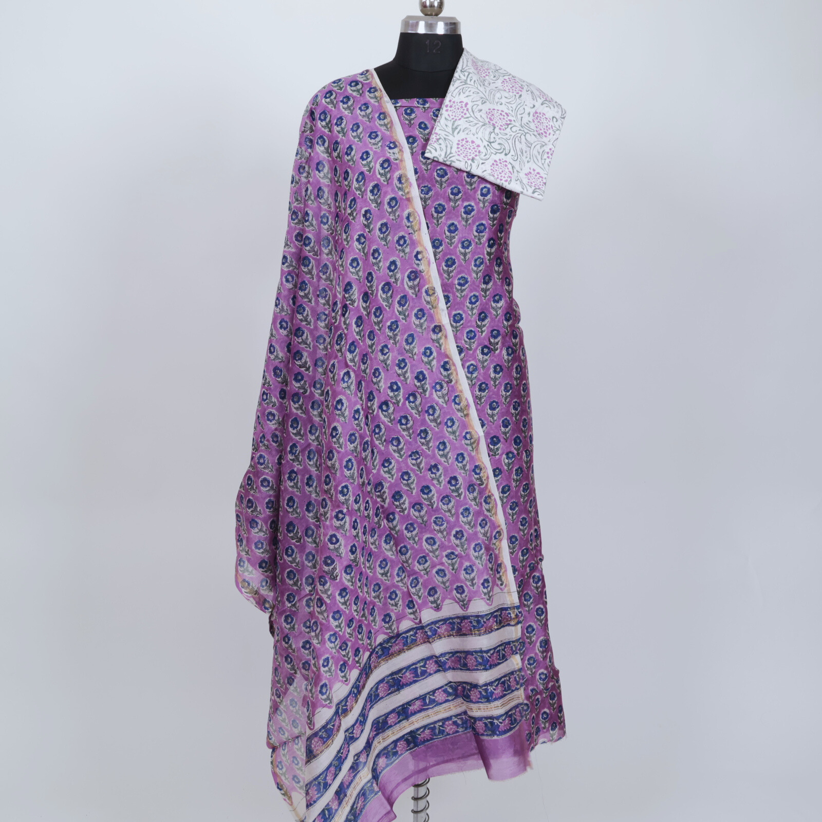 Handblock Chanderi Suit Material with Chanderi Dupatta