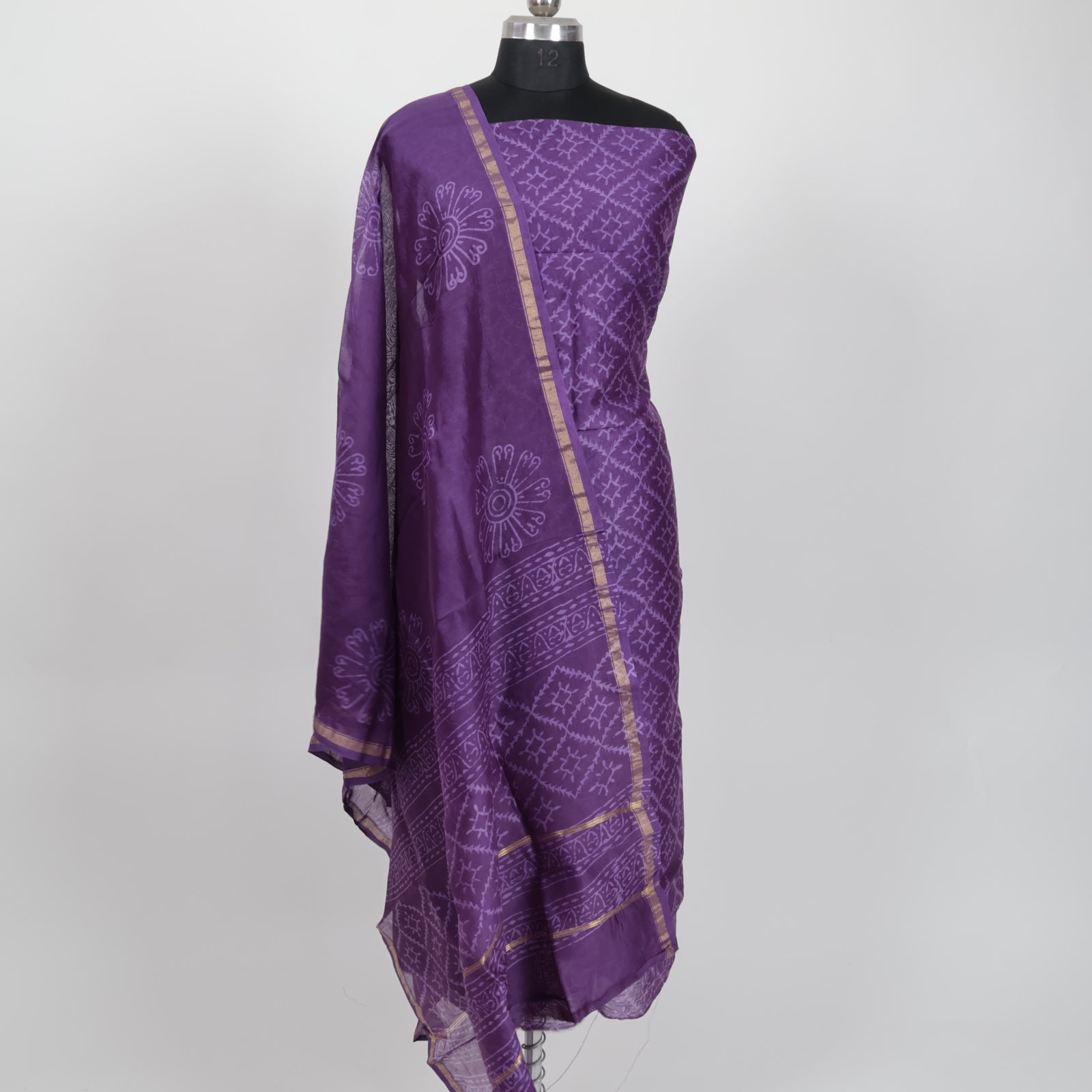 Handblock Chanderi Suit Material with Chanderi Dupatta