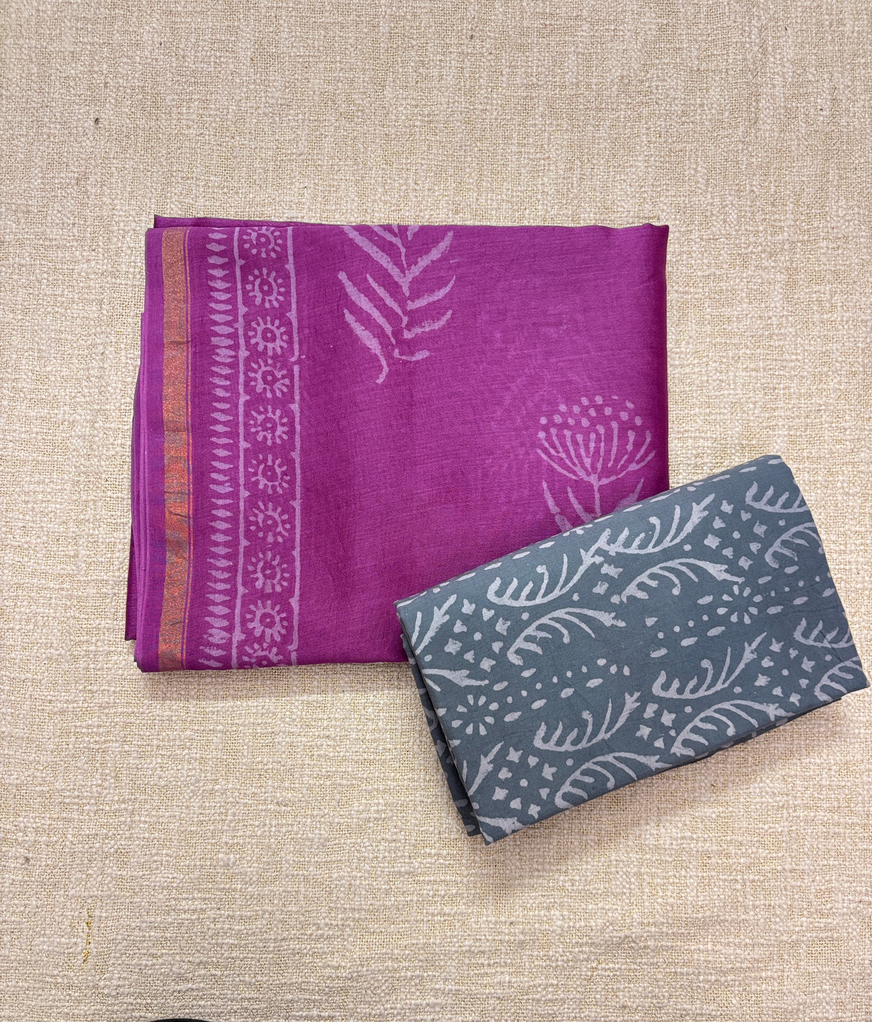 Handblock Chanderi Suit Material with Chanderi Dupatta