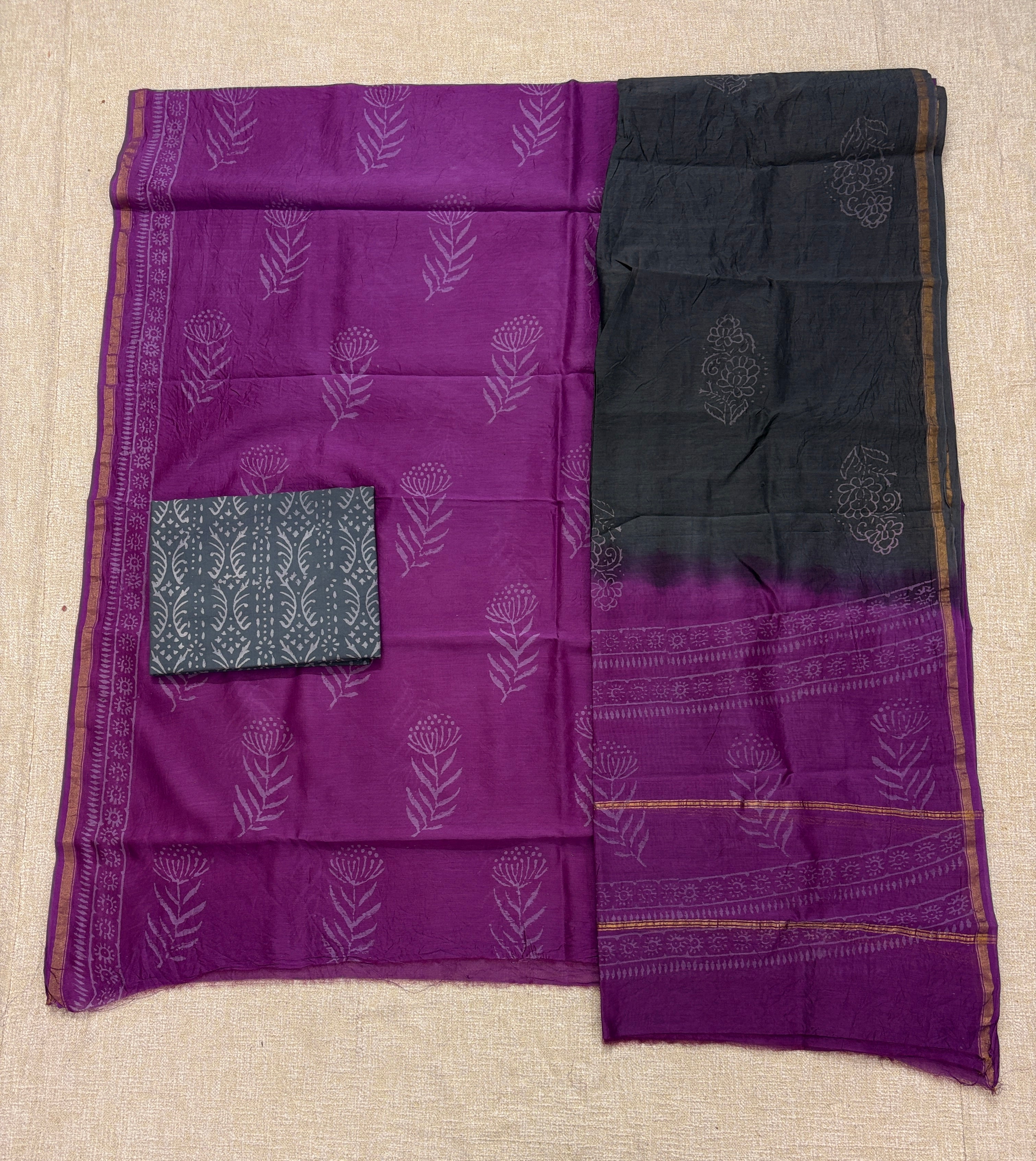 Handblock Chanderi Suit Material with Chanderi Dupatta(Lining Included)