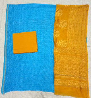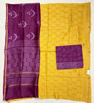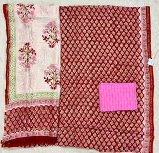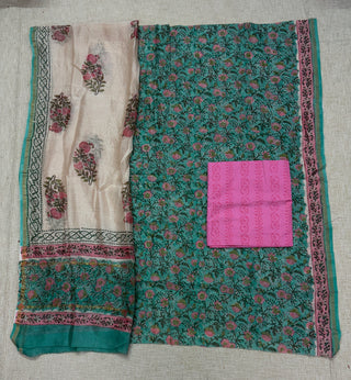 Handblock Chanderi Suit Material with Chanderi Dupatta(Lining Included)