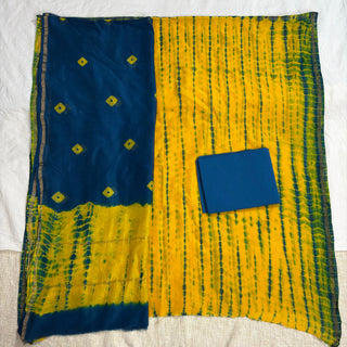 Blue Handblock Chanderi Suit Material with Chanderi Dupatta