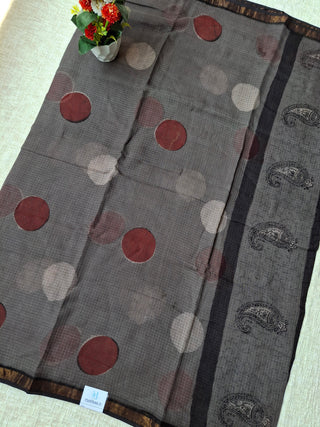Burgundy Hand block printed Kota Doria Cotton Saree with Unstitched Blouse Piece