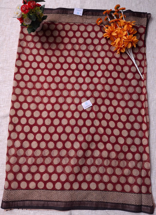 Burgundy Hand Block Printed Kota Doria Cotton Saree with Unstitched Blouse Piece