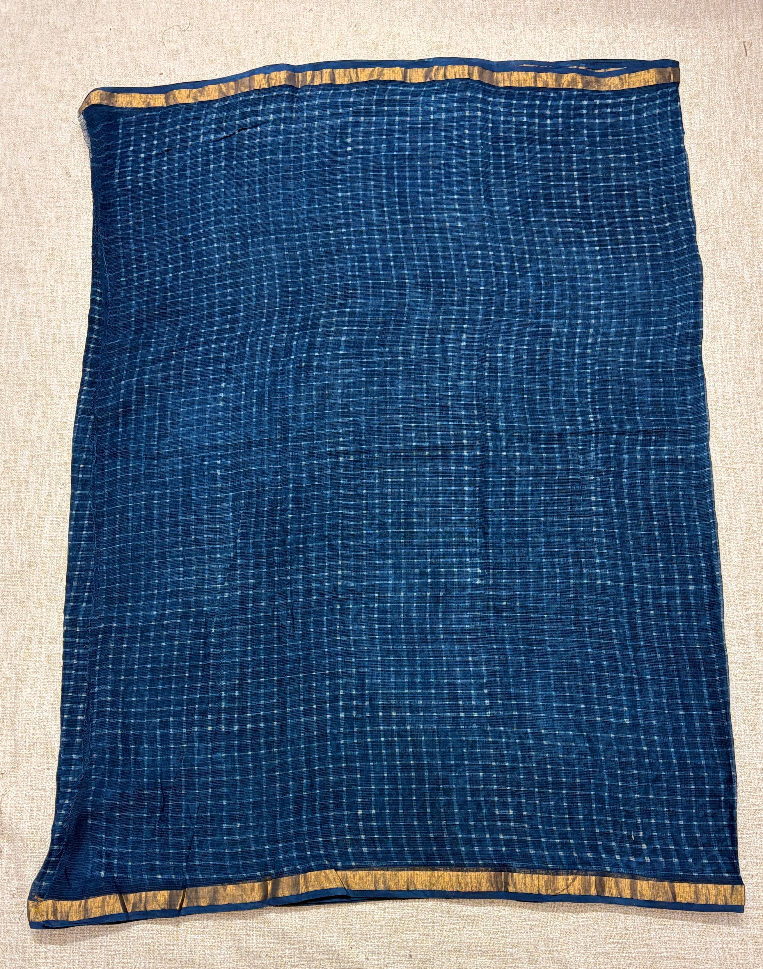 Hand block printed Kota Doria Cotton Saree with Unstitched Blouse Piece