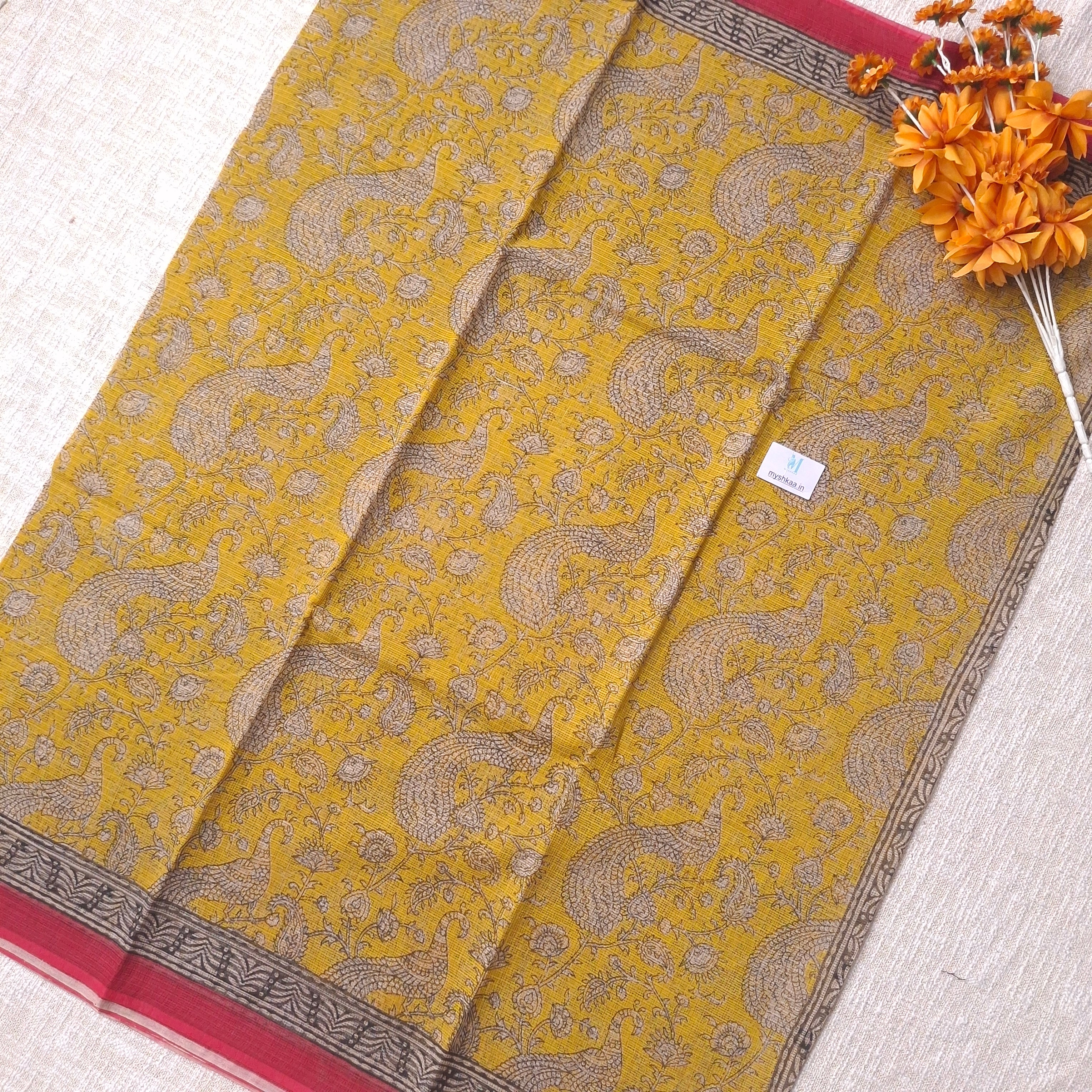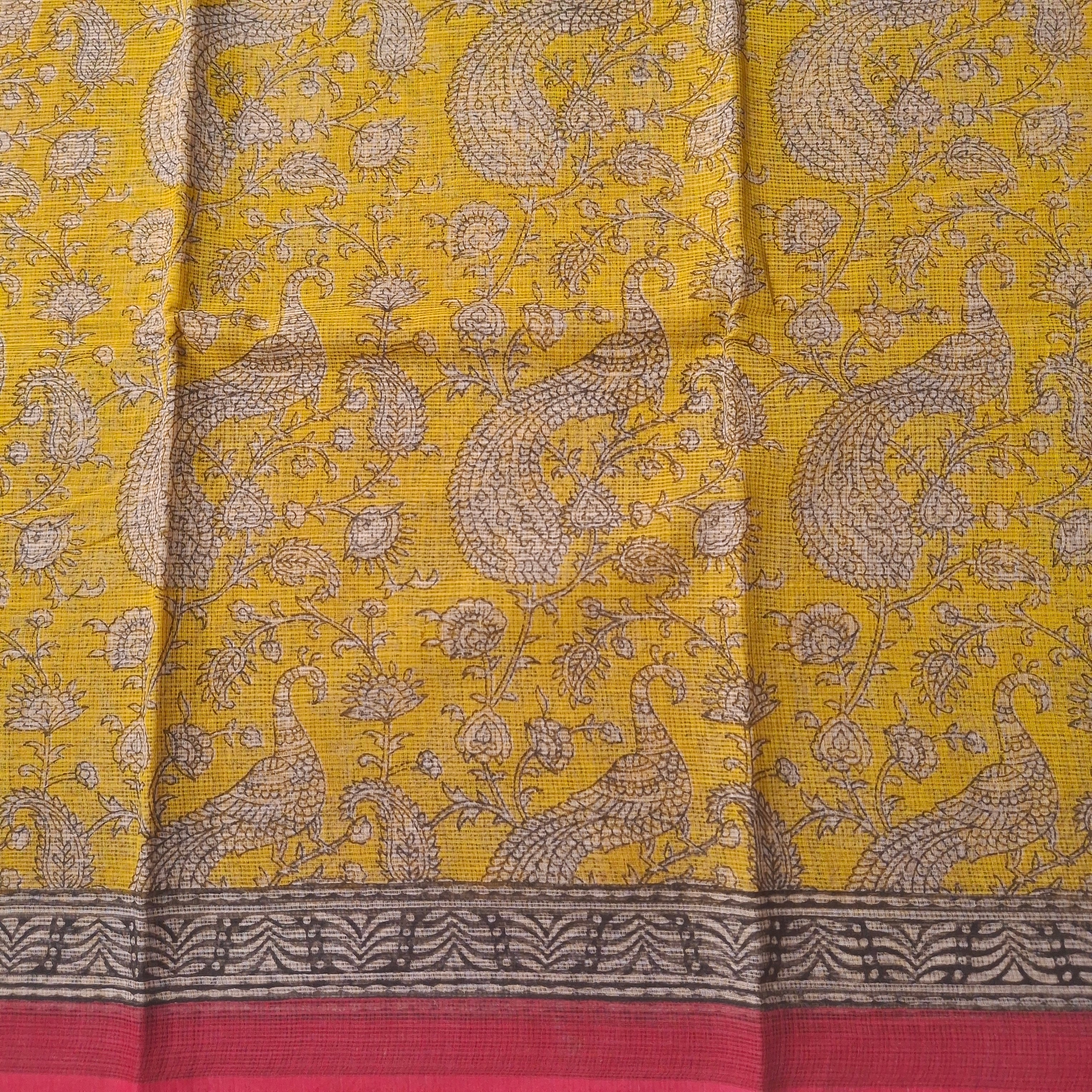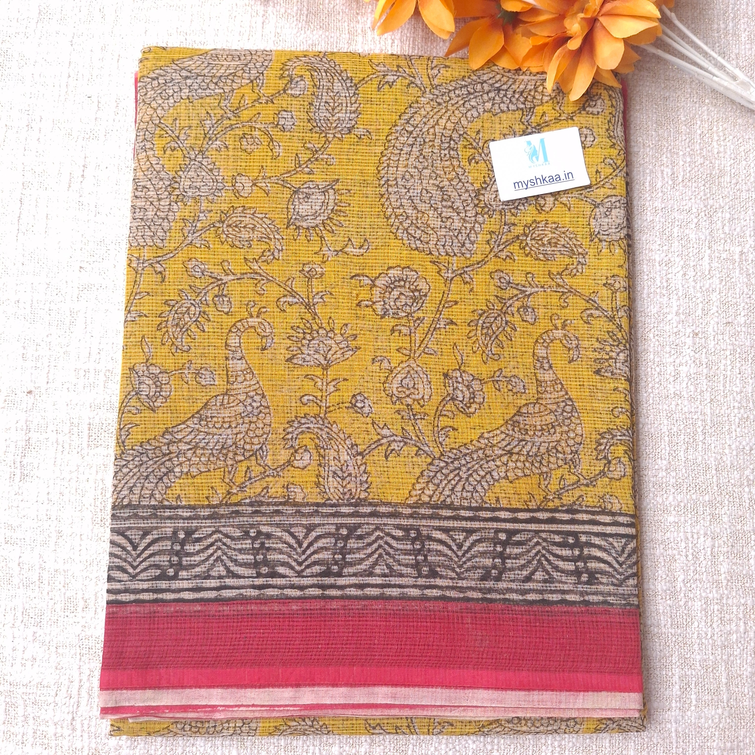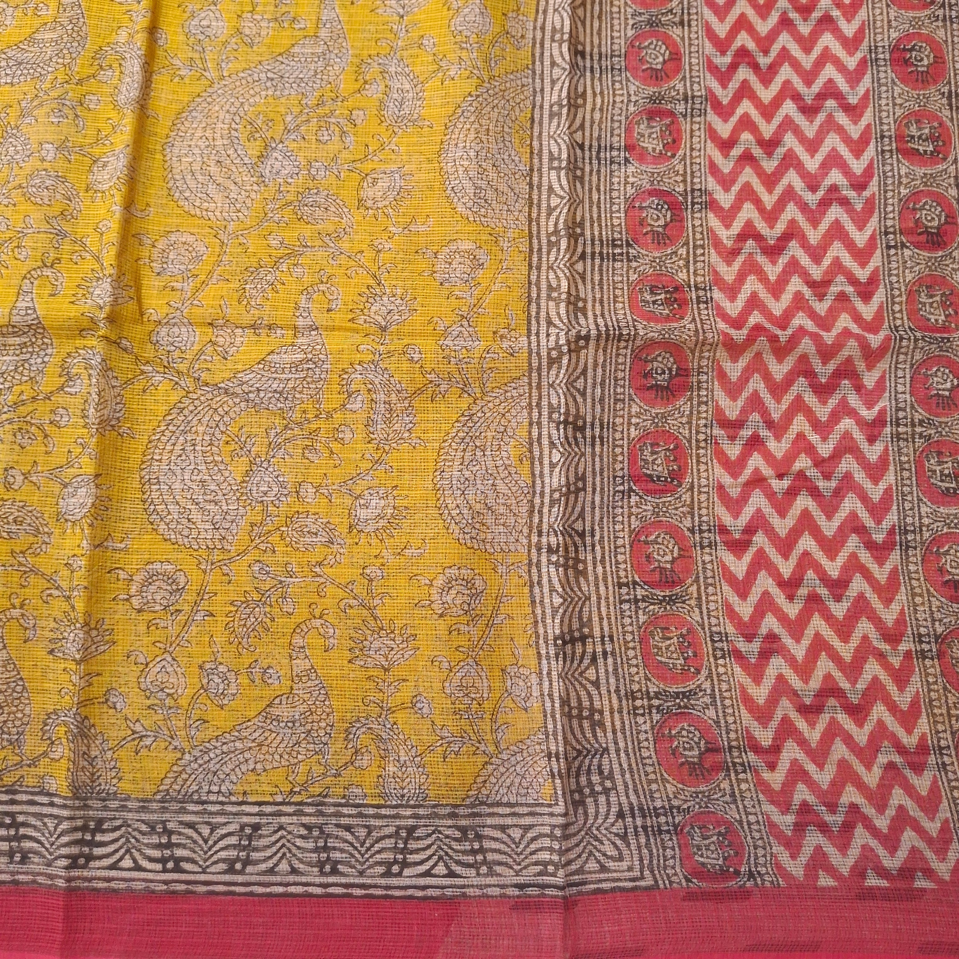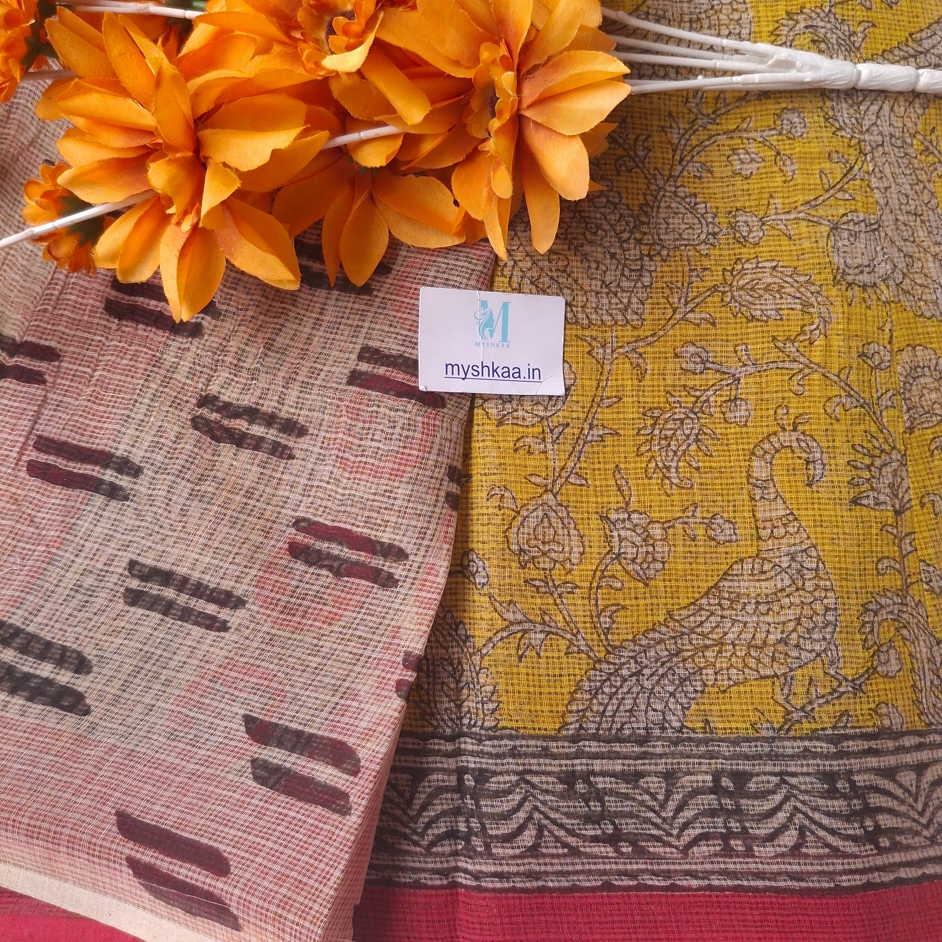 Hand Block Print Kota Doria Cotton Saree with zari border and unstitched Blouse Piece