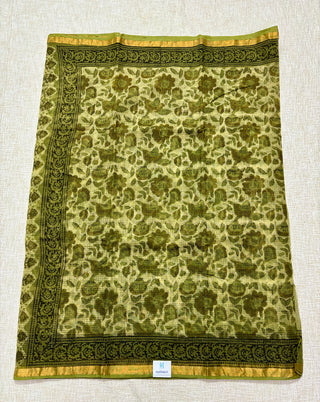 Hand Block Print Kota Doria Cotton Saree with zari border and unstitched Blouse Piece