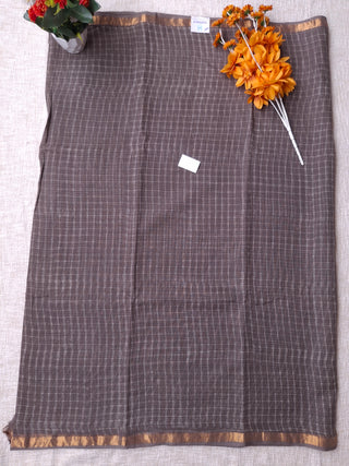Black Handblock Print Kota Doria Cotton Saree with zari border and unstitched Blouse Piece