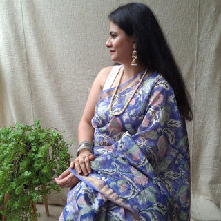 Ajrakh Print Maheshwari Silk Saree with Unstitched Blouse Piece