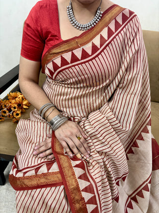Ajrakh Print Maheshwari Silk Saree with Unstitched Blouse Piece (Lining Included)