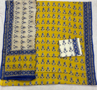 Handblock Maheshwari Suit Material with Maheshwari Dupatta