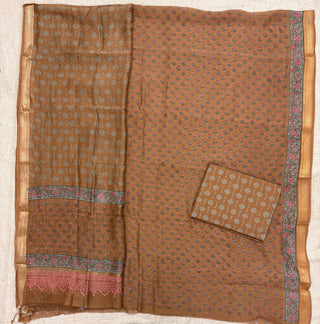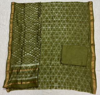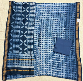 Needle Shibori Handblock Maheshwari Suit Material with Maheshwari Dupatta(Lining Included)