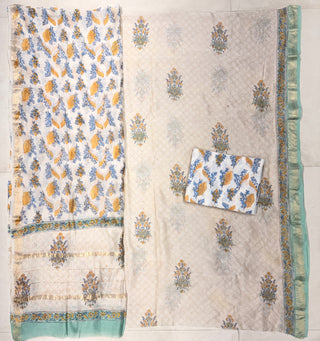 Handblock Maheshwari Suit Material with Maheshwari Dupatta(Lining Included)