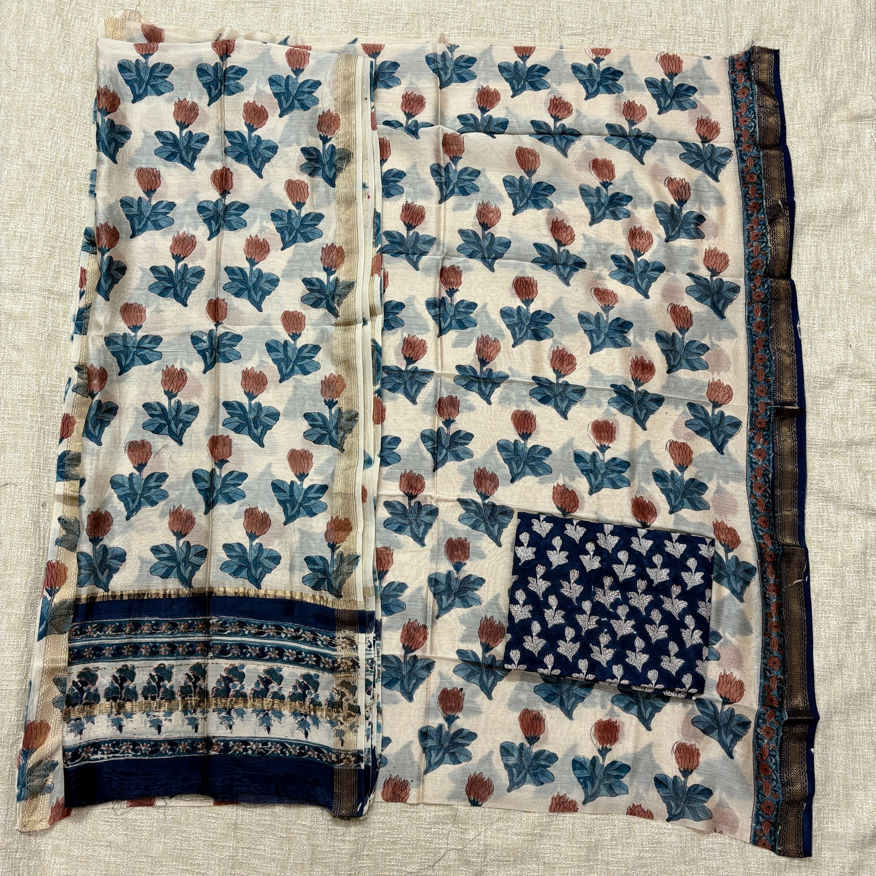 Handblock Maheshwari Suit Material with Maheshwari Dupatta